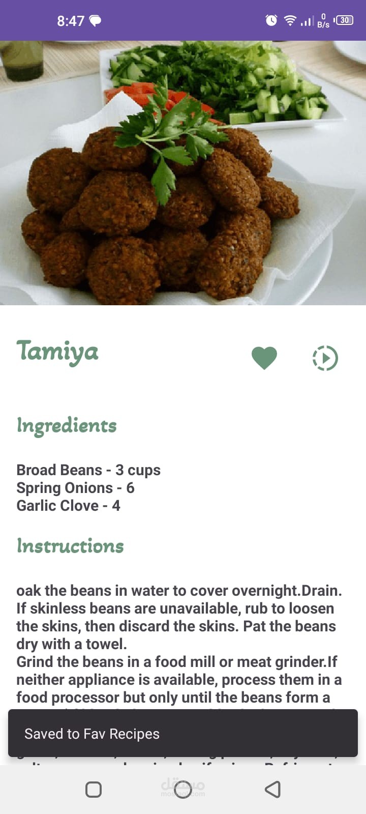 شاشة تفاصيل تحتوي على صورة كاملة، المكونات، وطريقة التحضير
