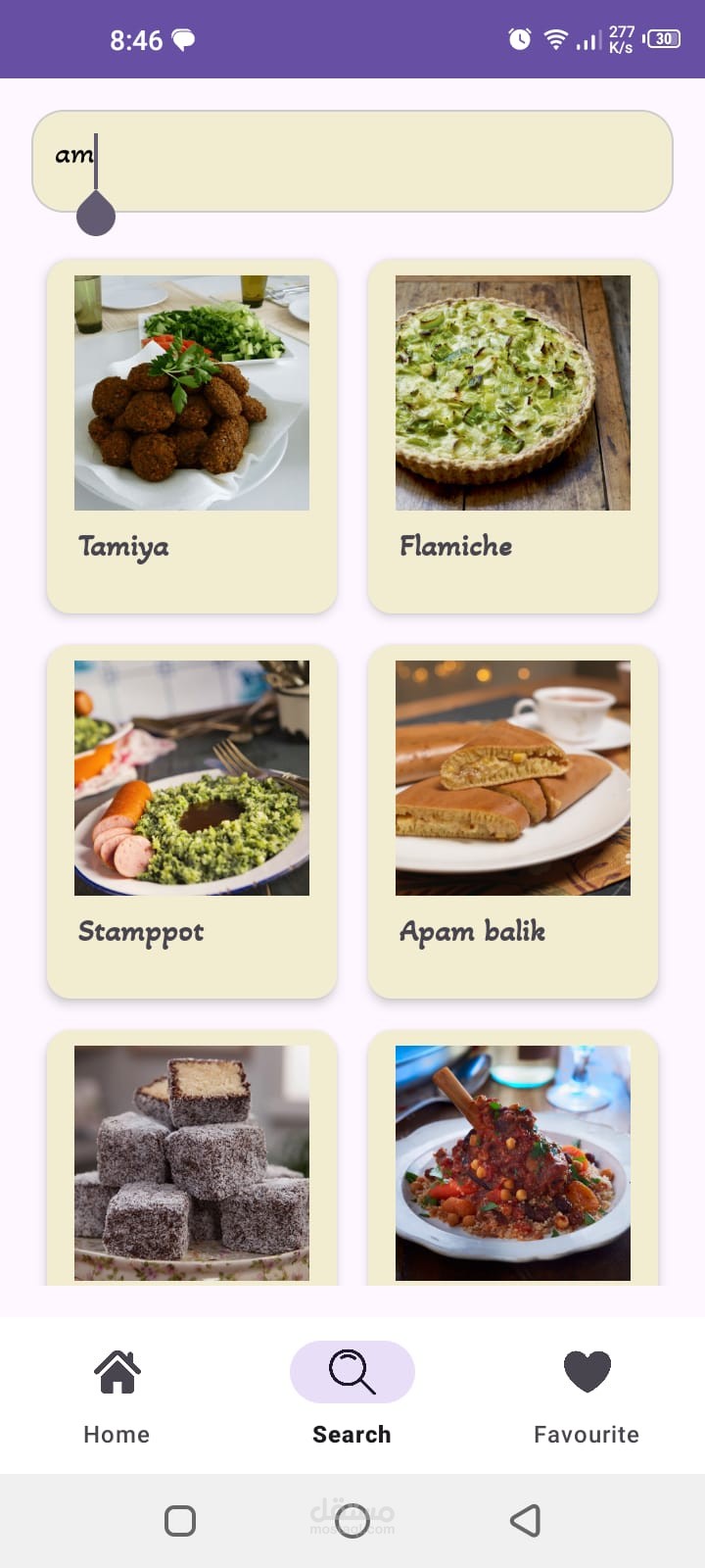خاصية البحث (Search) للوصول السريع للوصفات