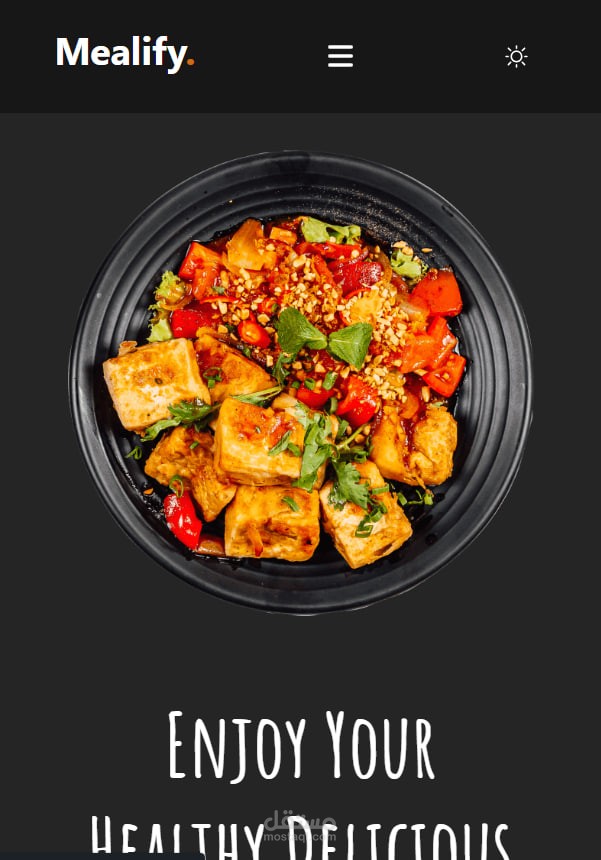موقع Mealify هو صفحة هبوط (Landing Page) مصمَّمة لعرض تجربة طعام جذابة ومتناسقة للزوار. الموقع يحتوي على أقسام رئيسية مثل الرئيسية، الطهاة المحترفين، معرض الصور، والتواصل. تم تصميمه باستخدام HTML وCSS ويتميز بـواجهة مستخدم منسقة ومنظمة تعرض صور أطعمة شهية وأسماء الطهاة مع وصف بسيط لهم، وكذلك قسم Gallery لعرض وجبات متنوعة وقسم Contact لتفاصيل التواصل مع المطعم. تصميم الموقع يعكس أسلوبًا عصريًا بسيطًا يساهم في جذب الزوار وتشجيعهم على التفاعل مع المحتوى.
