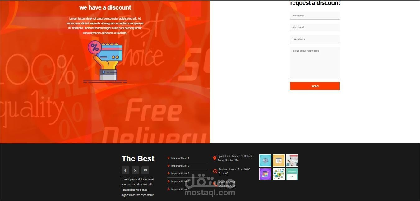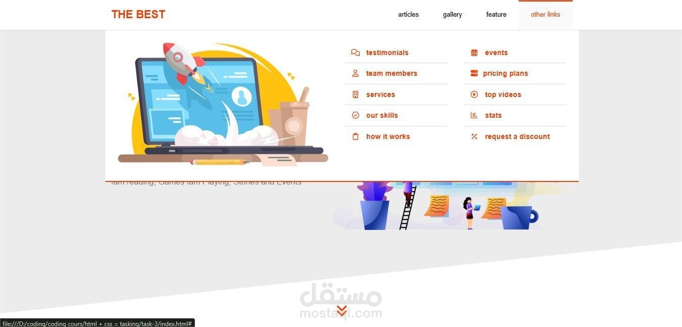 (HTML, CSS), Designed and developed a responsive web page (The Best) with structured sections