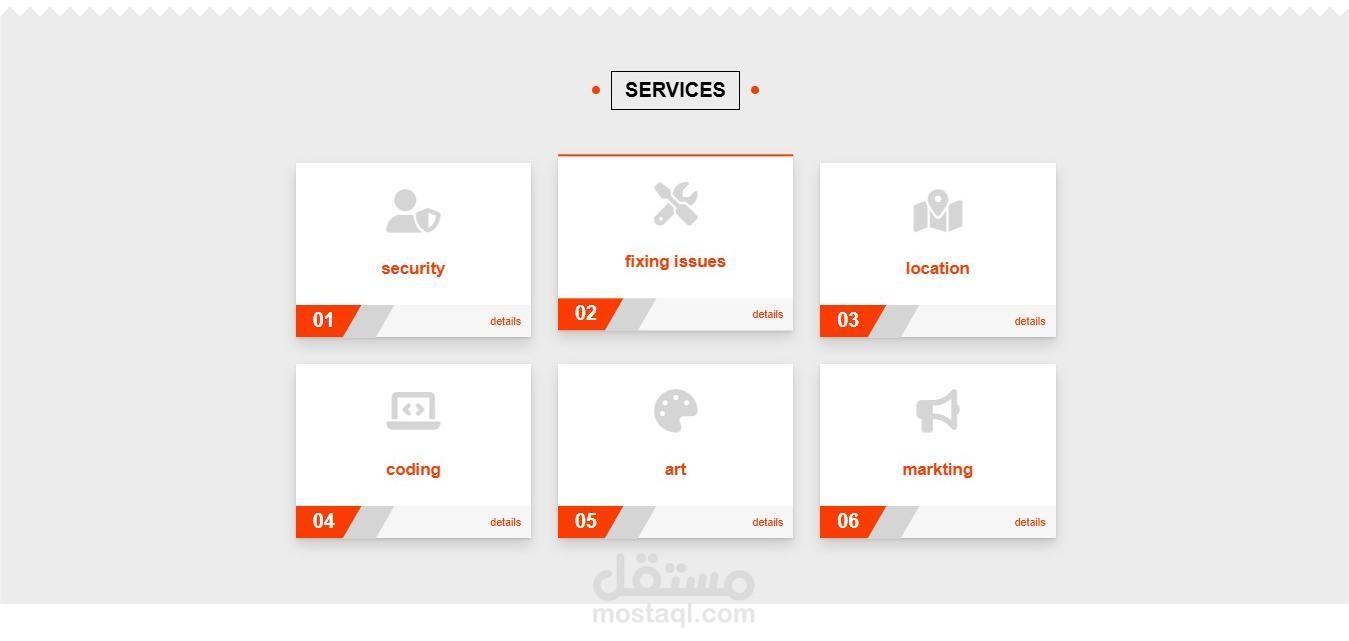 for introduction, services, portfolio, and contact, focusing on a clean layout and compatibility
