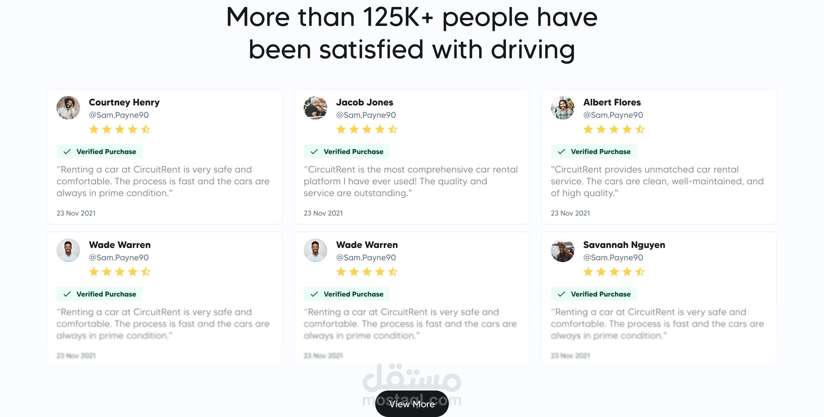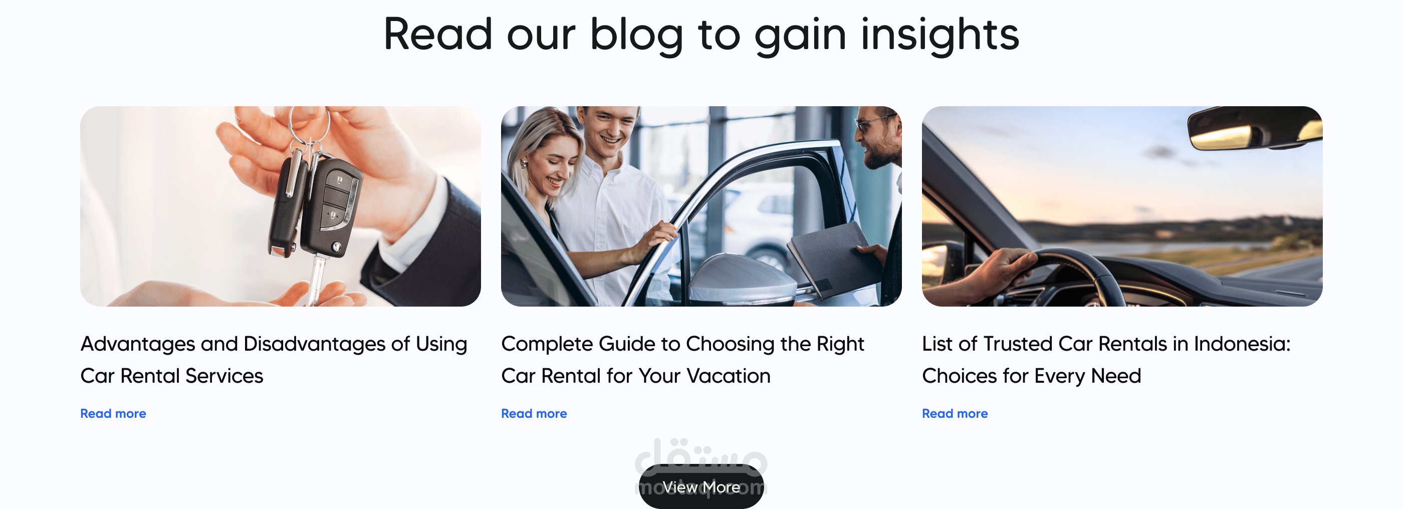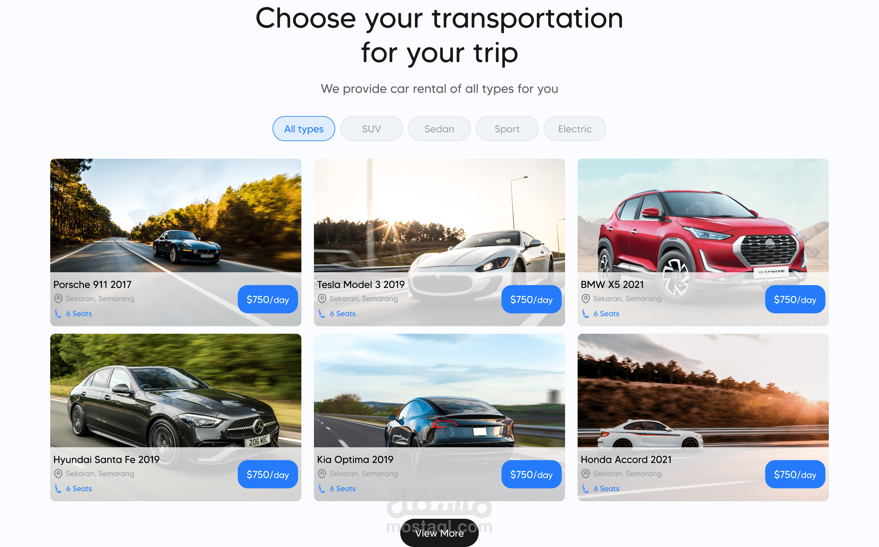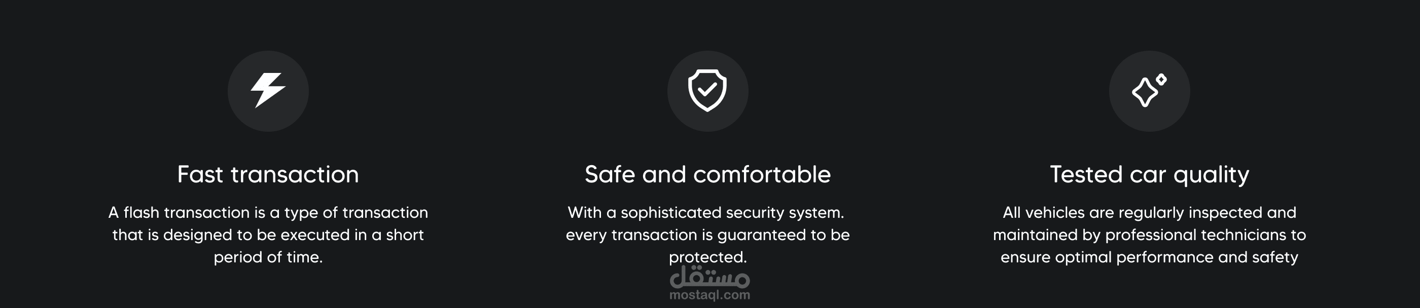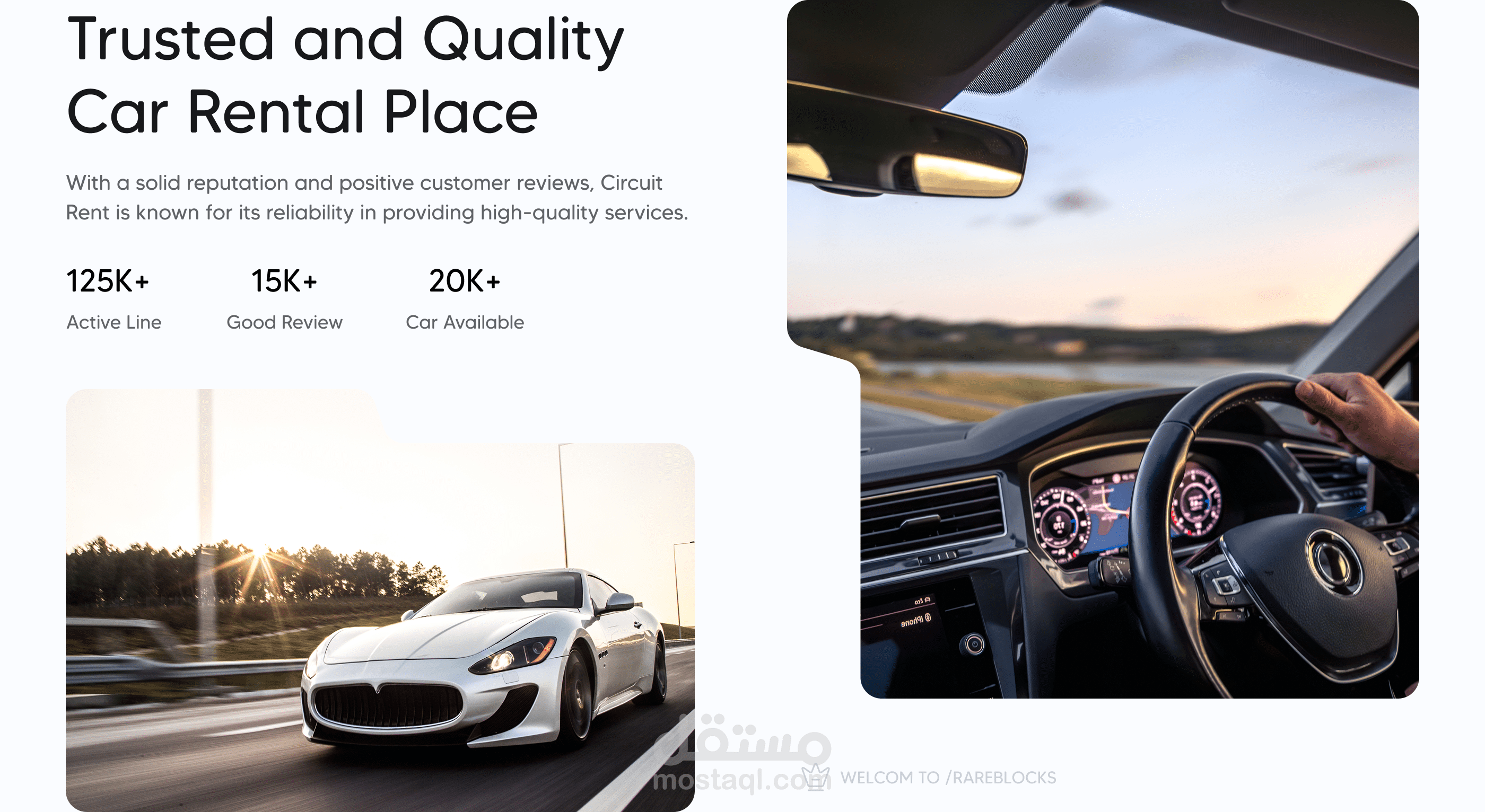 • Hero Section : عنوان رئيسي قوي مع CTA واضح لحجز السيارة فوراً