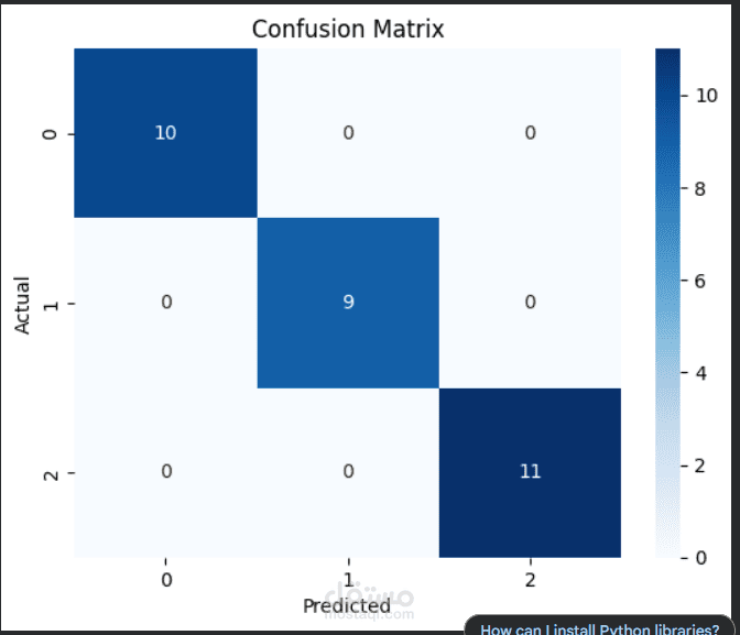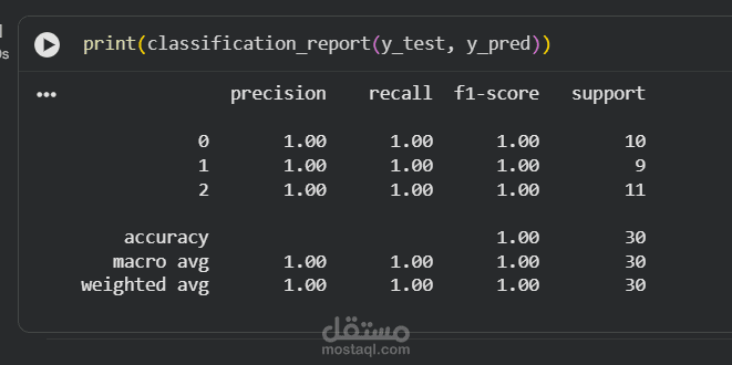 حقق النموذج دقة تصل إلي100% على بيانات الاختبار، مما يدل على كفاءة النموذج في التصنيف.