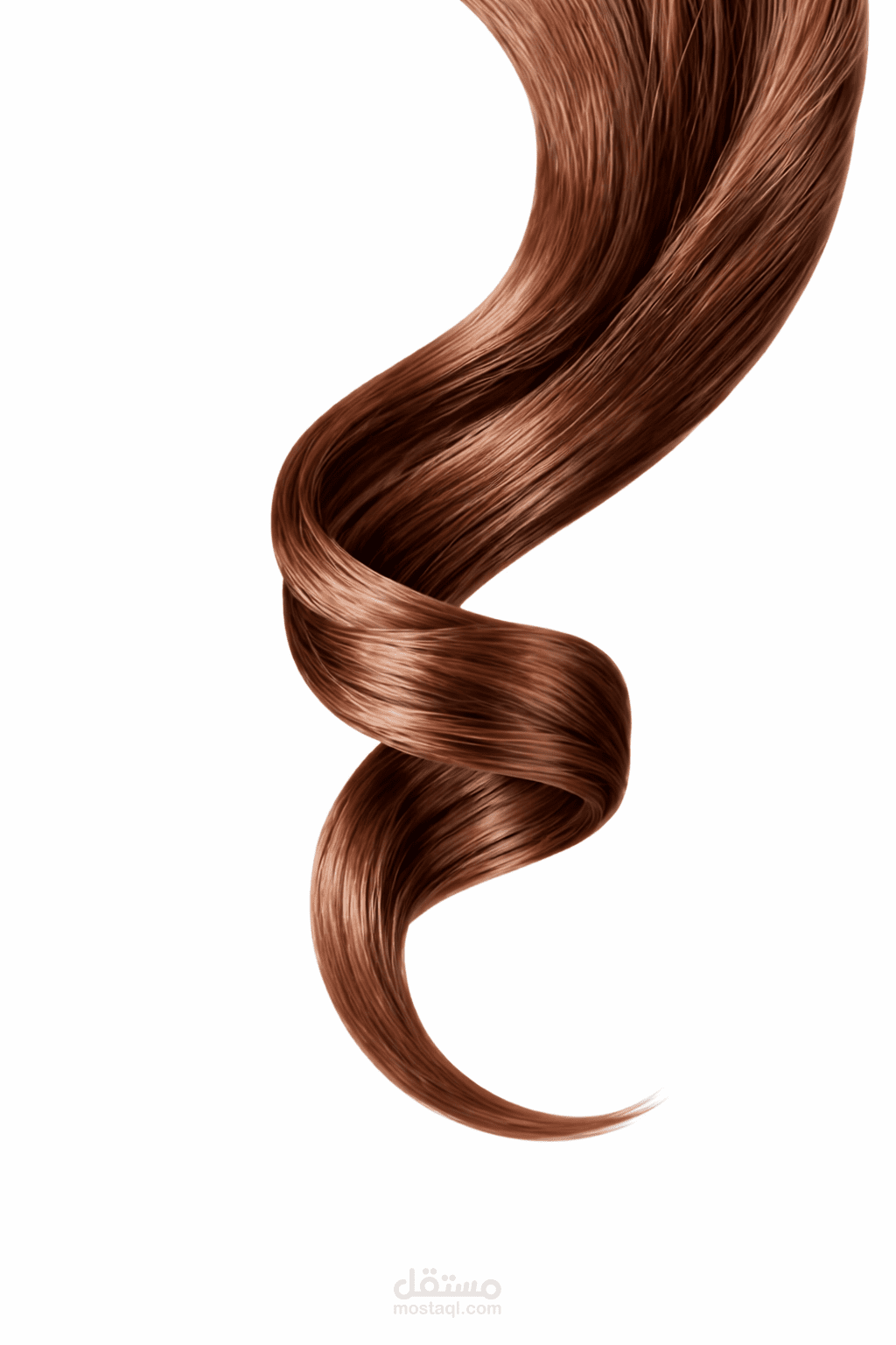 تم تصميم بوستر إعلاني ببرنامج الفوتوشوب بخلفية حمراء قوية لشد الانتباه، مع دمج صورة زجاجة المنتج وخصلة شعر لامعة ملتفة حولها لإبراز فكرة القوة والكثافة.