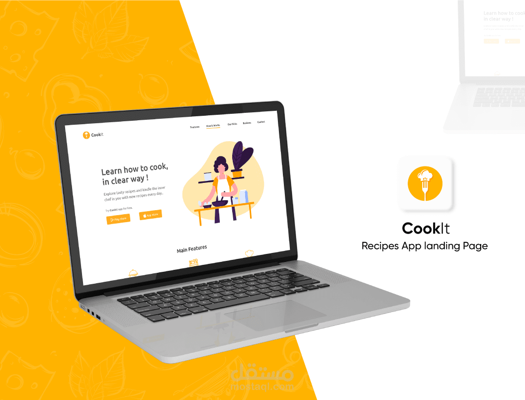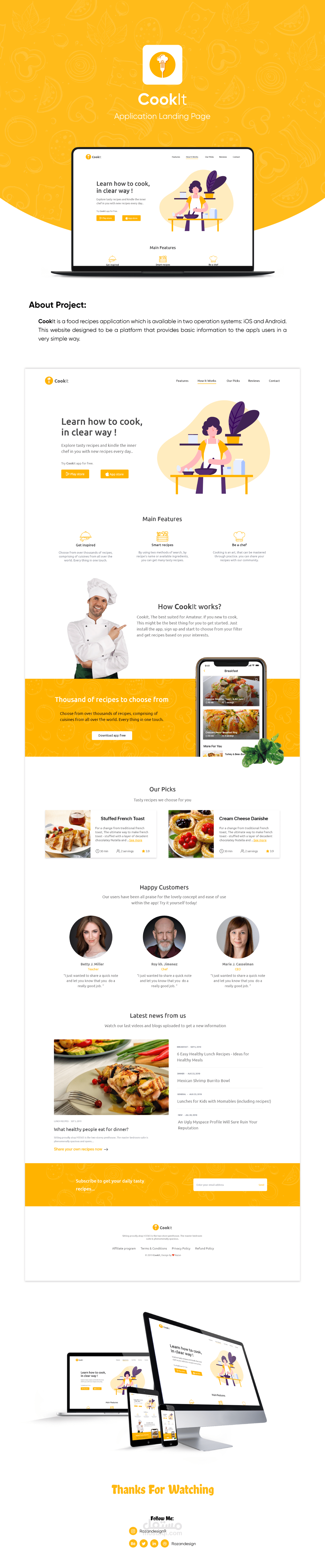 صفحة هبوط لتطبيق يختص بوصفات الطعام المختلفة