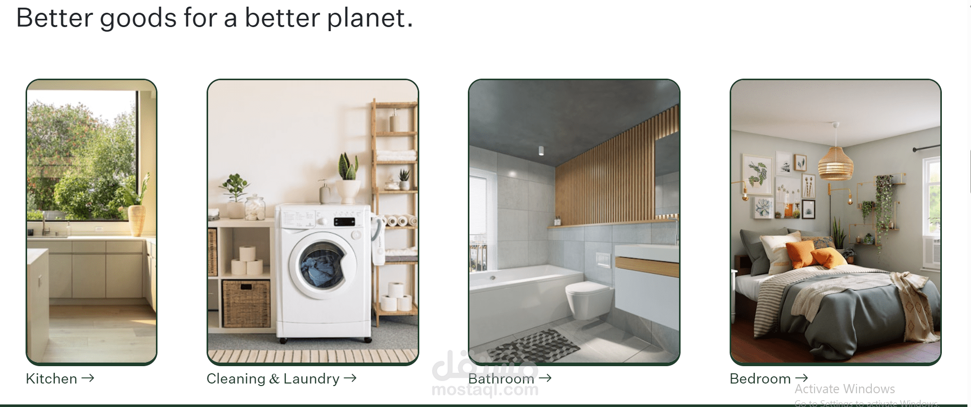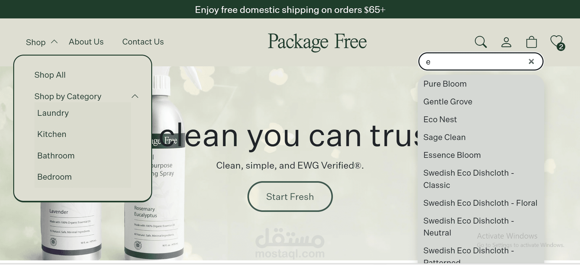 موقع تجارة إلكترونية لعرض وبيع المنتجات الطبيعية، يضم عدة أقسام رئيسية تشمل المطبخ، والحمام، والتنظيف، وغرف النوم، مما يسهّل على المستخدم تصفح المنتجات حسب الفئة.