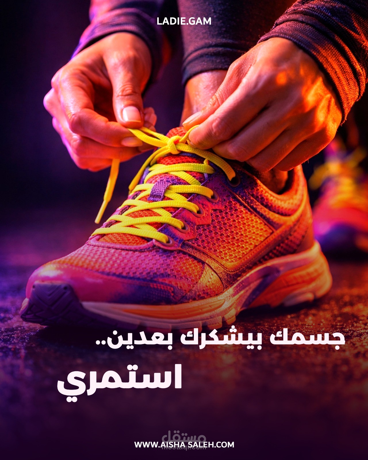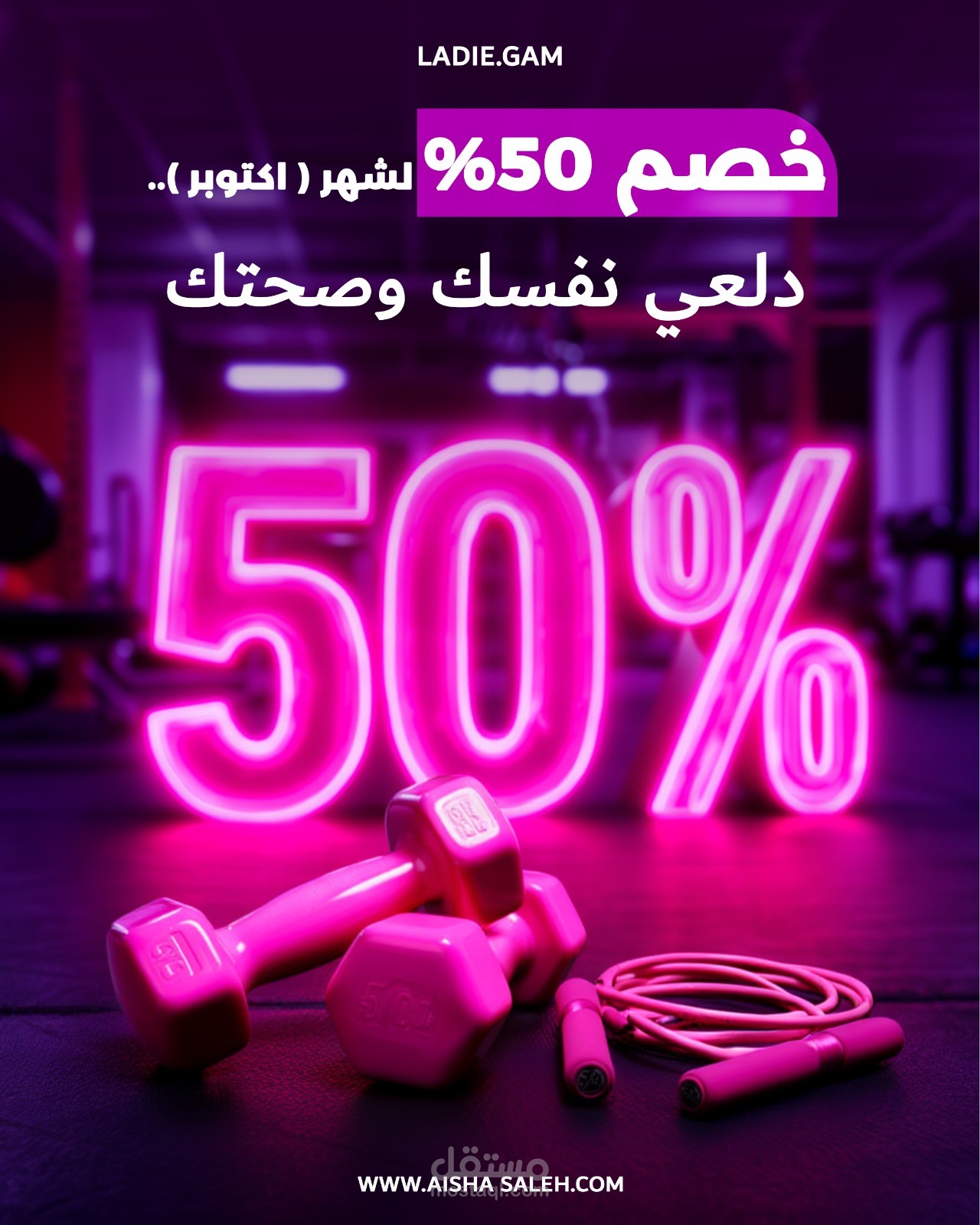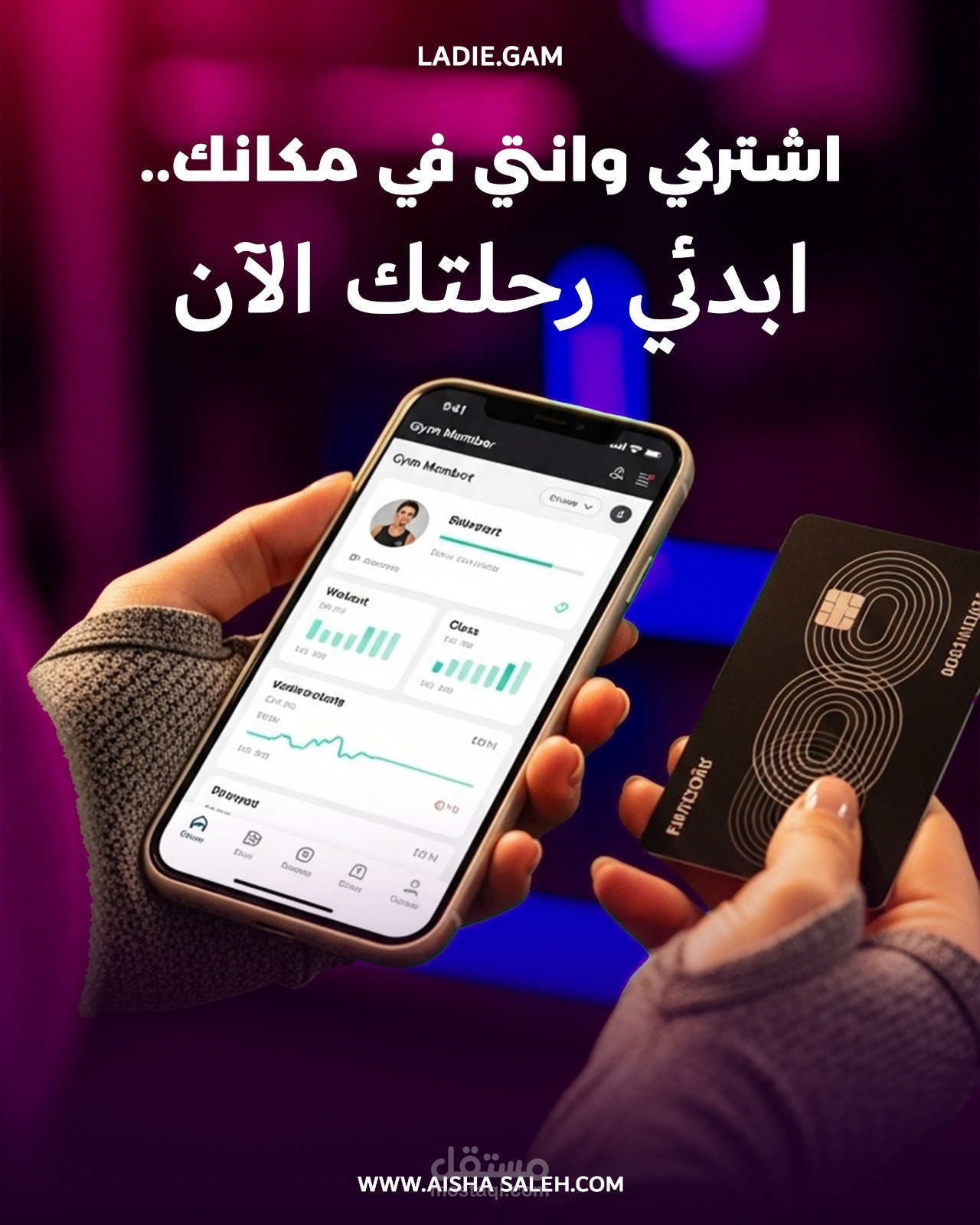 مشروع جديد اشتغلت عليه لبراند جيم نسائي باسم LADIE.GAM. الهدف كان خلق هوية بصرية تجمع بين القوة والأنوثة باستخدام ألوان النيون الجذابة عشان تعكس طاقة المكان وحيويته.
