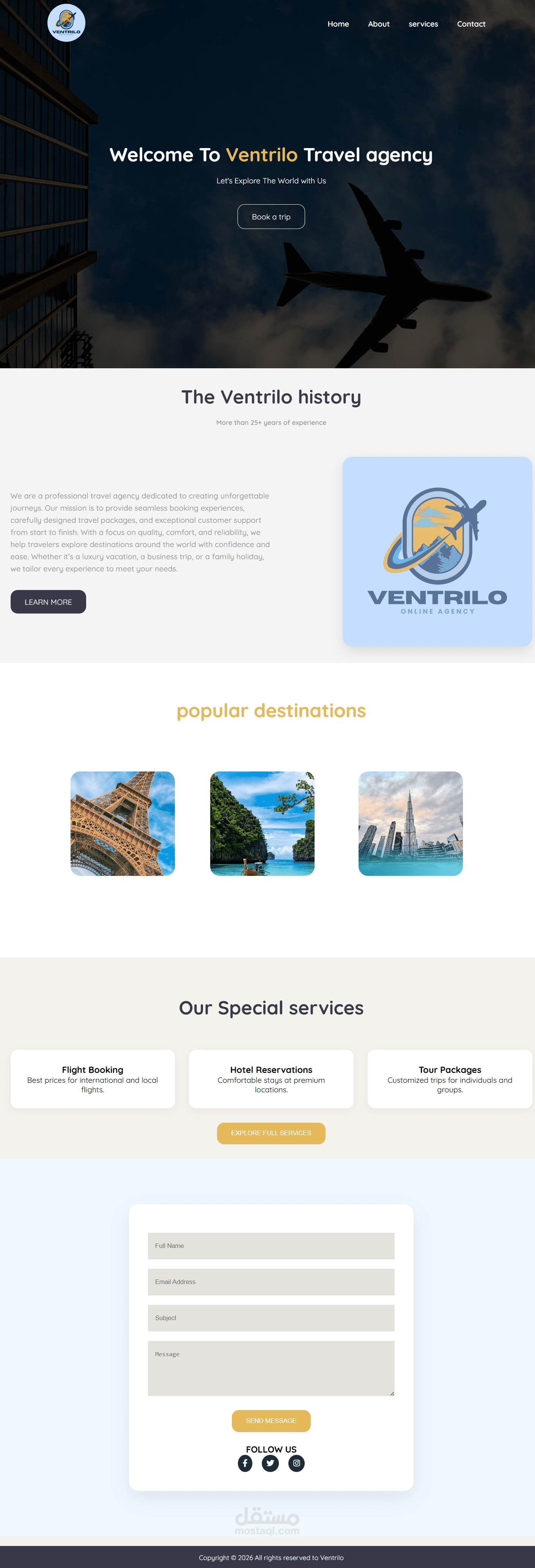 I designed and developed Ventrillo, a modern and fully responsive travel agency website built to help travel businesses attract more customers and increase booking inquiries.