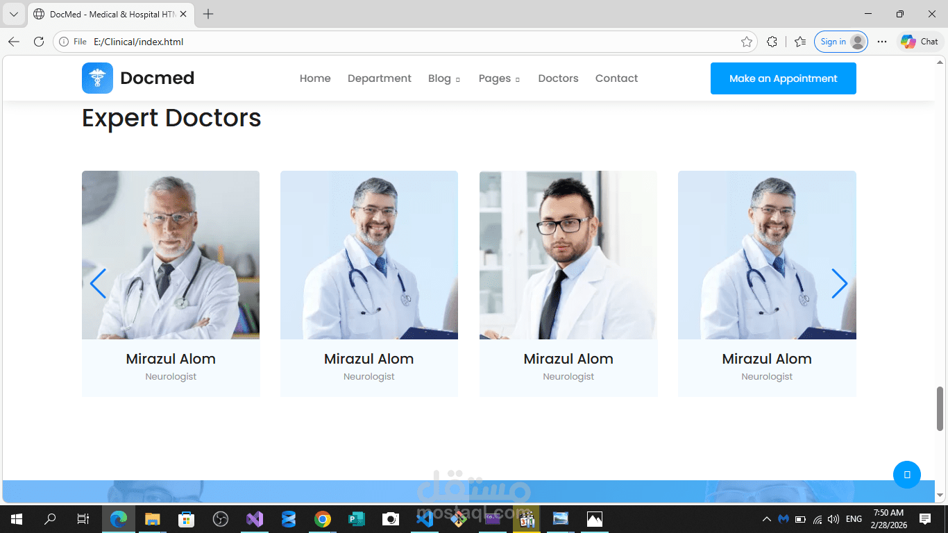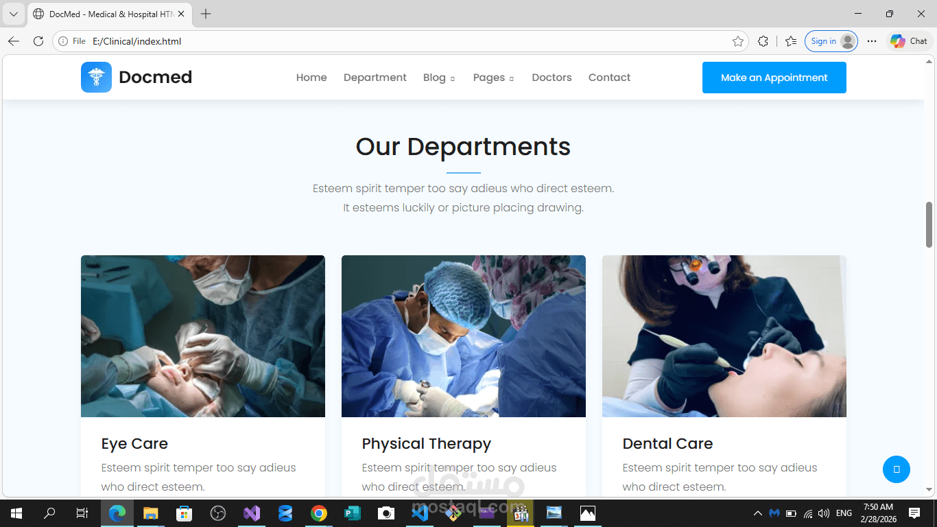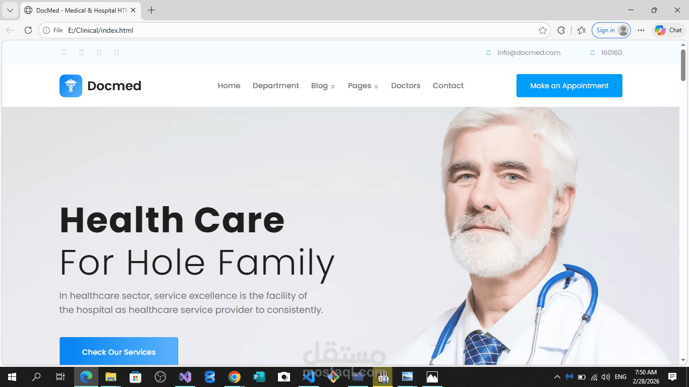 تطوير واجهة أمامية (Frontend Development) لموقع خدمي طبي يتميز بالبساطة والوضوح.