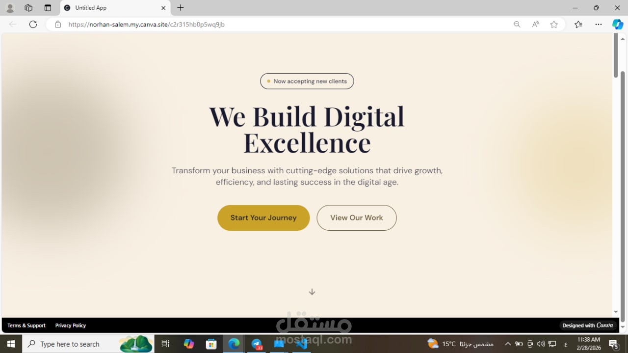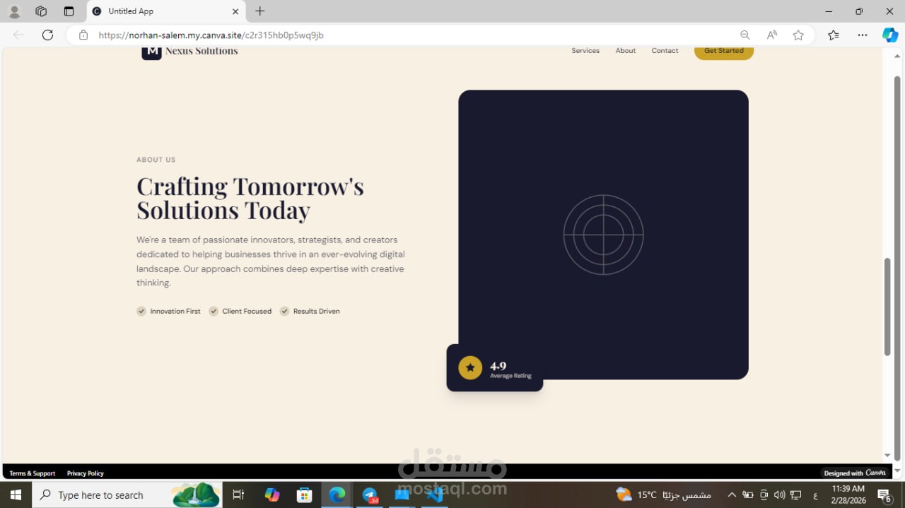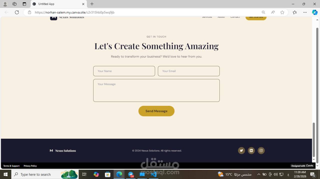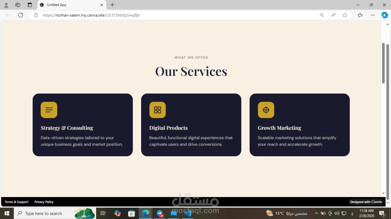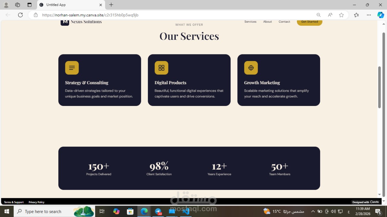 تطوير واجهة هبوط (Landing Page) احترافية لوكالة خدمات رقمية وتطوير أعمال.