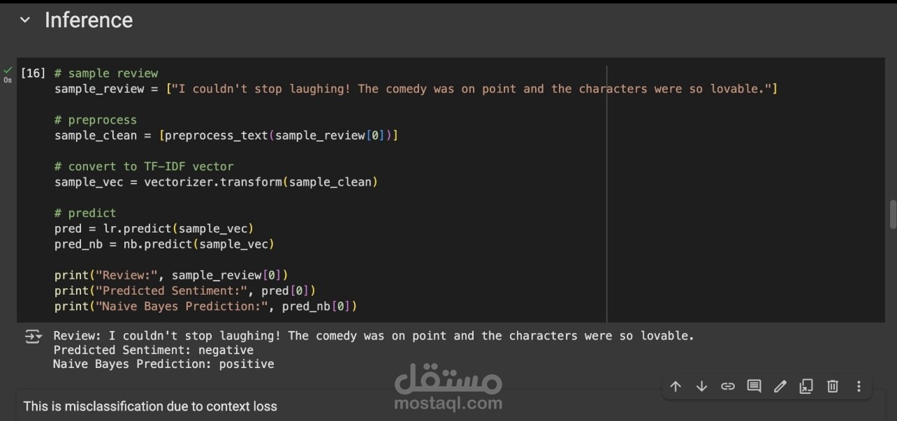 هذا المشروع يعكس قدرتي على معالجة البيانات النصية وبناء نماذج تعلم آلة لتطبيقات تحليلية عملية في مجال NLP.