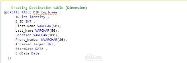اولا انشاء قاعدة بيانات كمصدر في ال SQL server SSMS