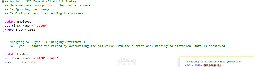 تطبيق ثلاث انواع مختلفة من ال SCD : Type 0 , Type 1 and Type 2