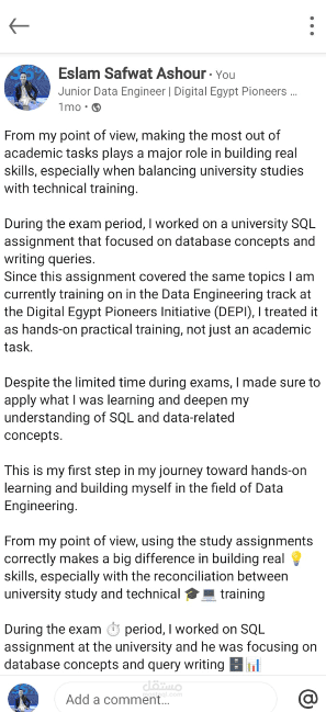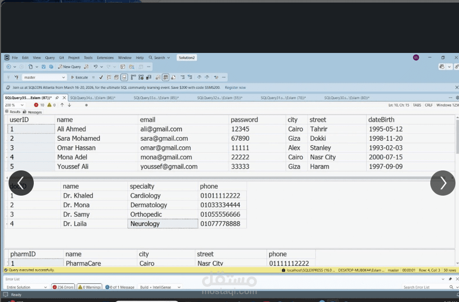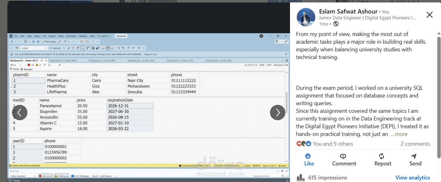 مشروع تصميم وتحليل قواعد البيانات باستخدام SQL (مشروع مستقل)