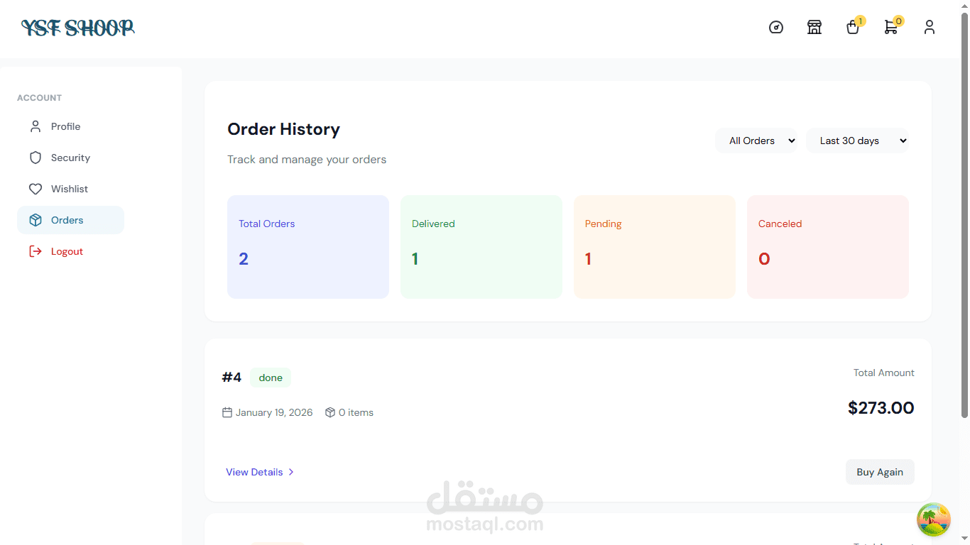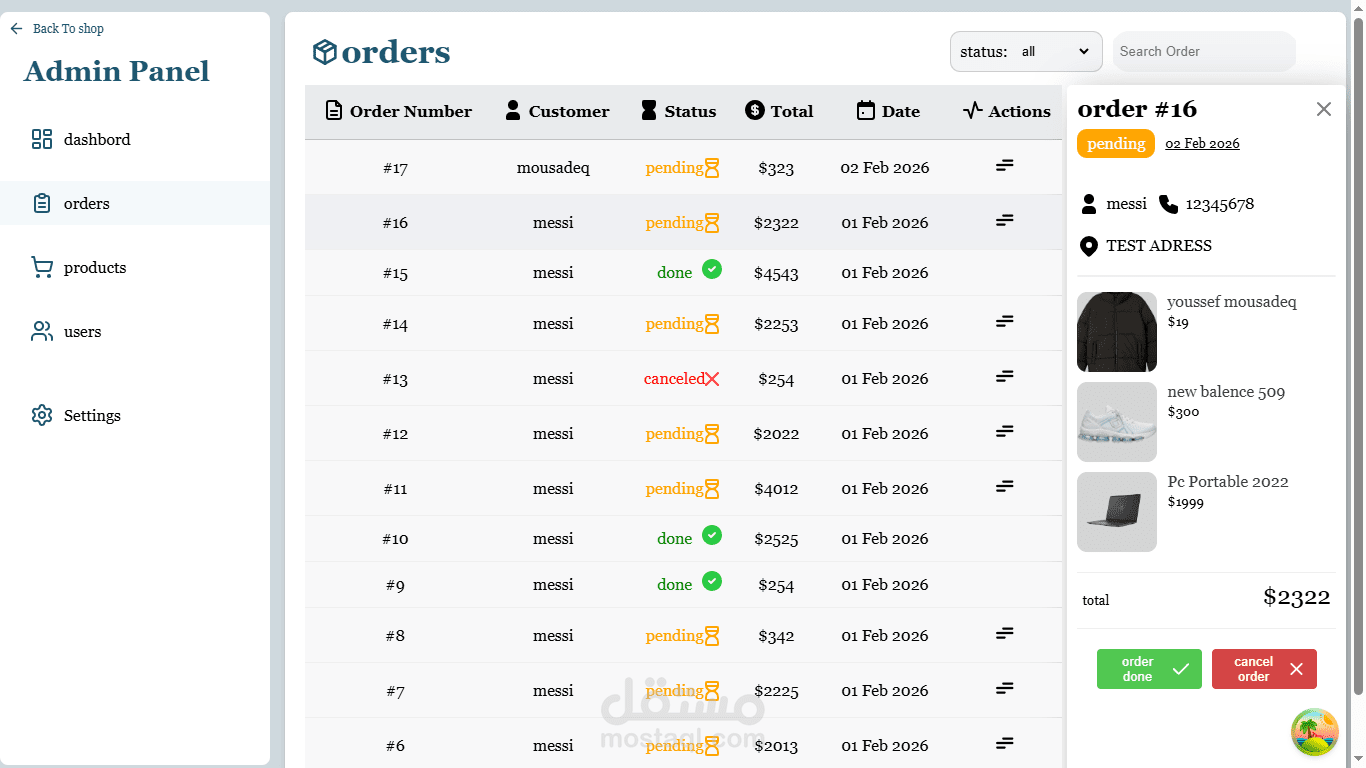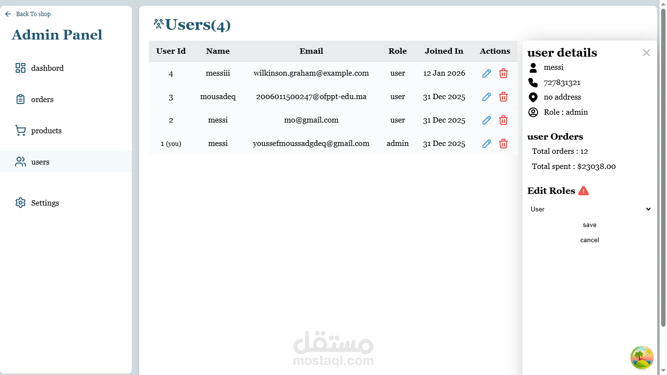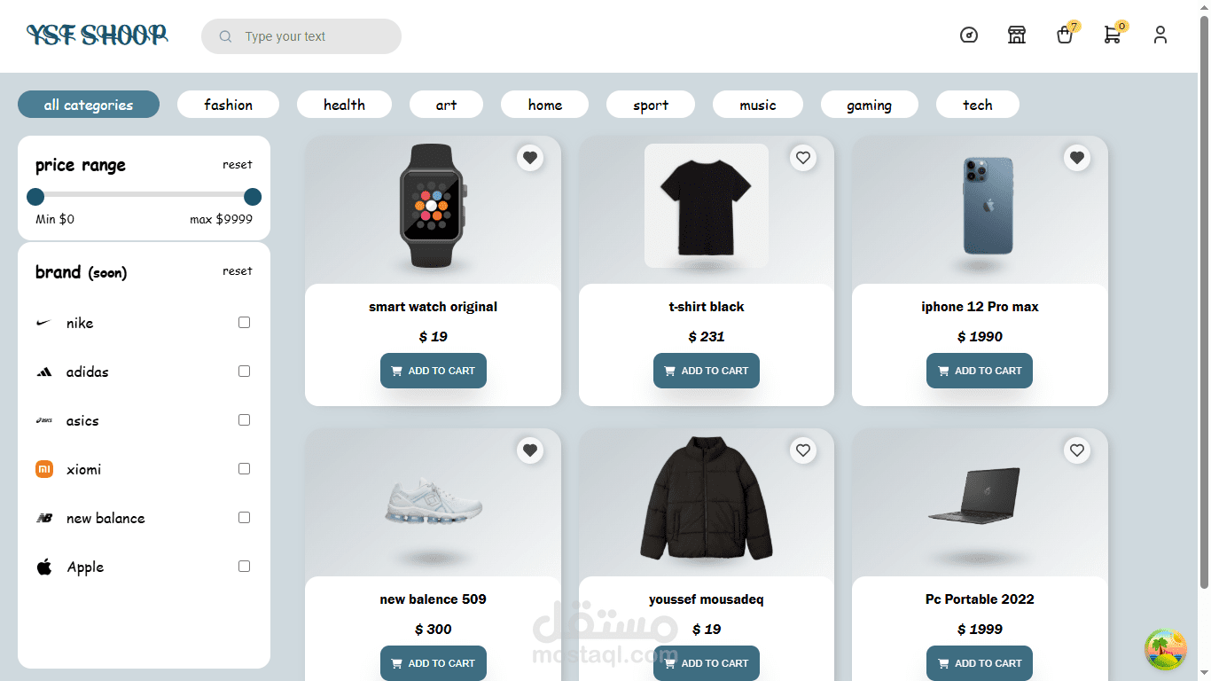 تم بناء تطبيق التجارة الإلكترونية هذا كنظام متكامل (Full-Stack) بواجهة أمامية باستخدام React وباك إند باستخدام Laravel. بالإضافة إلى إدارة المنتجات، سلة المشتريات، والطلبات عبر RESTful APIs، تتضمن المنصة ميزة Marketplace تتيح للمستخدمين بيع وشراء منتجاتهم الخاصة.