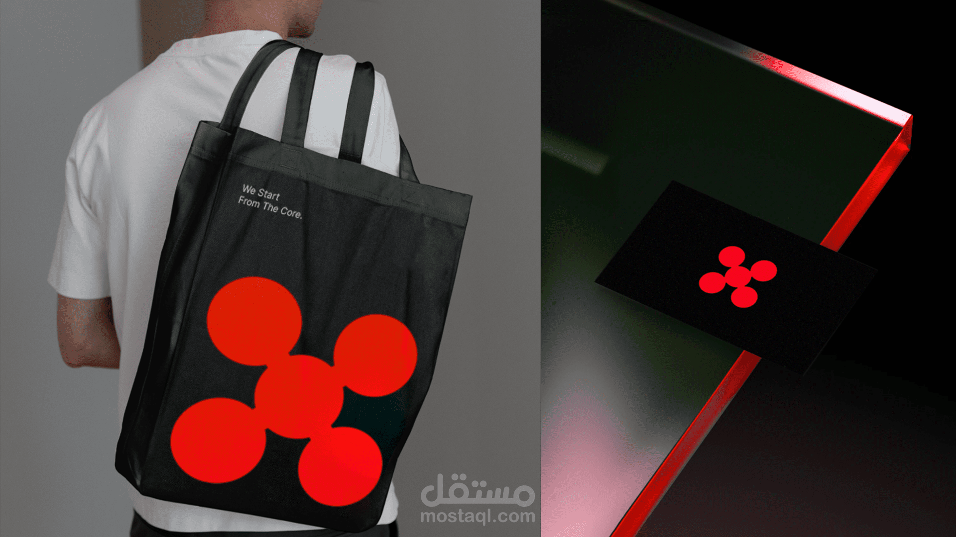 The logo was designed to embody the concept of the core, reflecting the agency’s philosophy of building brands and businesses from the essence of the idea.