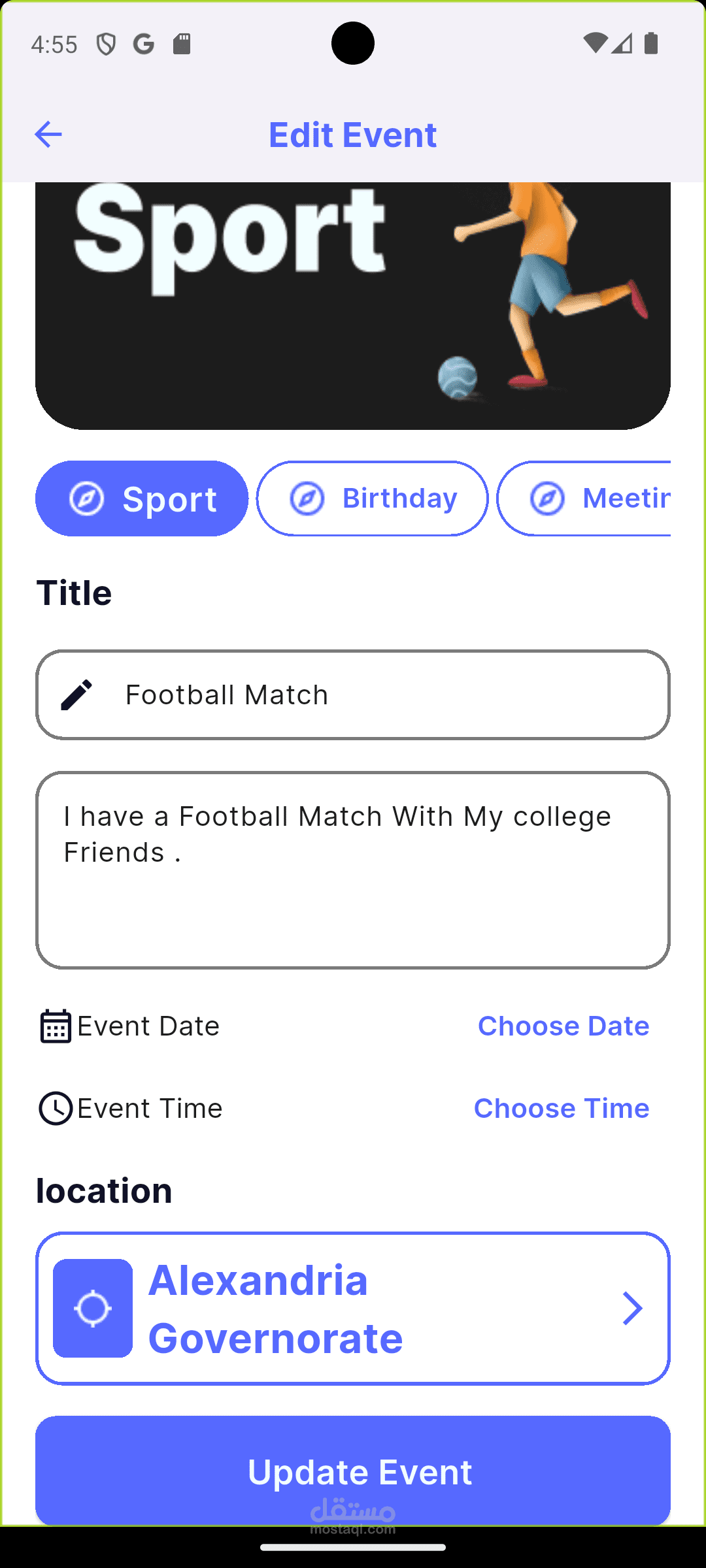 تطبيق متكامل لإدارة واستكشاف الفعاليات يتيح للمستخدمين تصفح الأحداث حسب الفئة، البحث المتقدم، عرض التفاصيل الكاملة، وحجز التذاكر بسهولة.