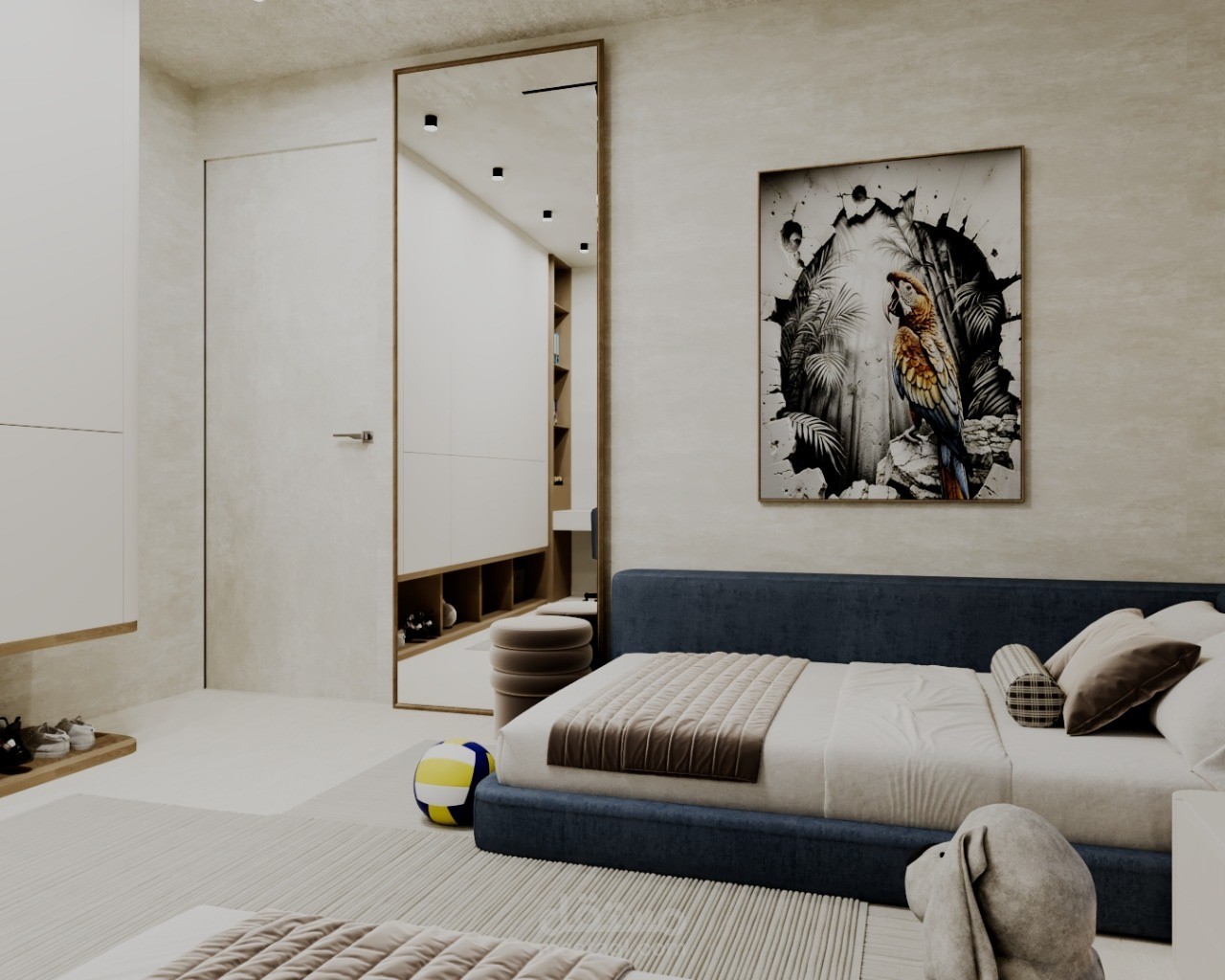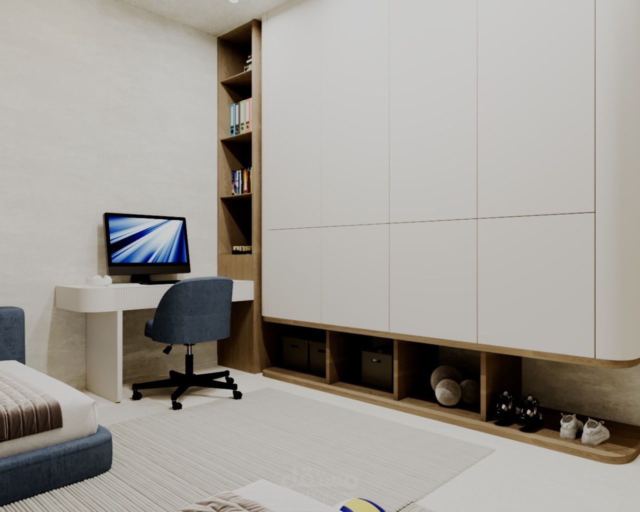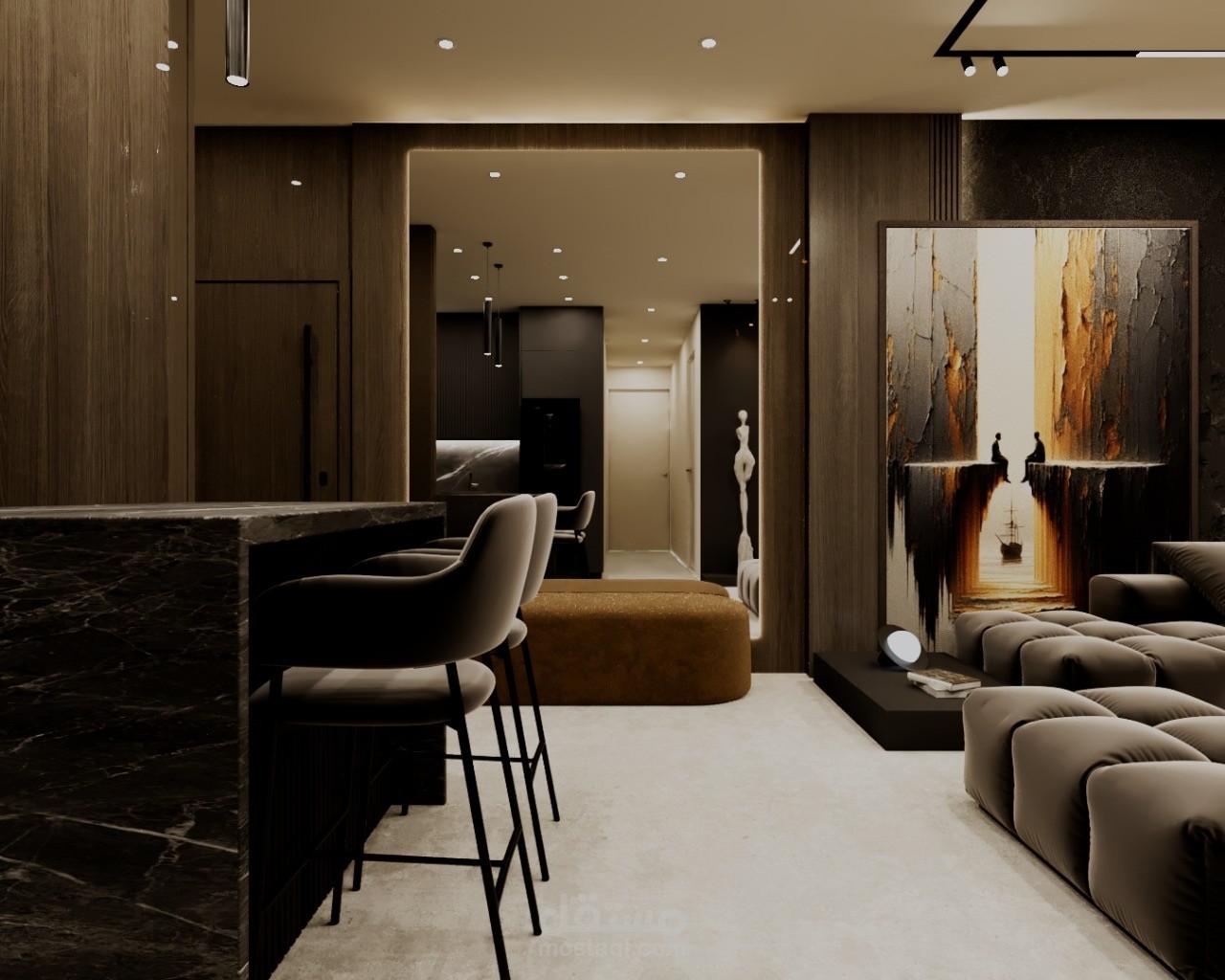 A modern residential apartment designed with a clean and elegant aesthetic, focusing on comfort and functionality. The concept combines neutral tones, warm wood finishes, and subtle accent details to create a balanced and inviting atmosphere.