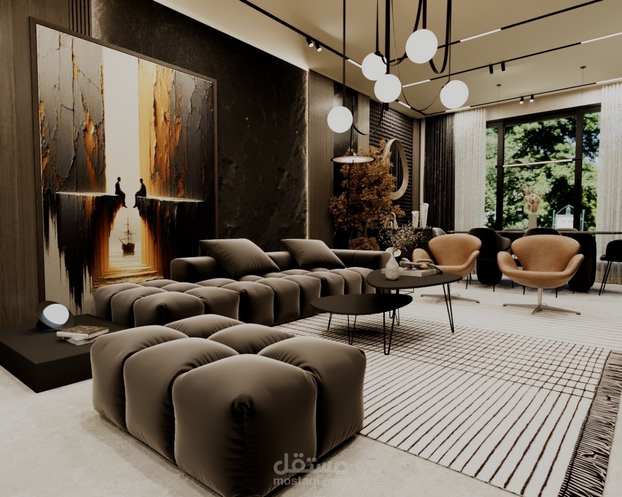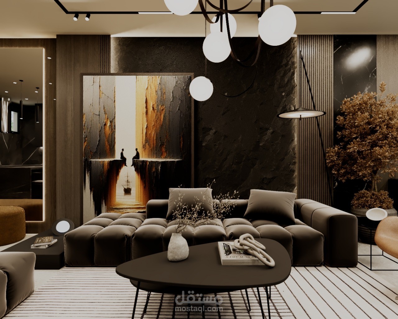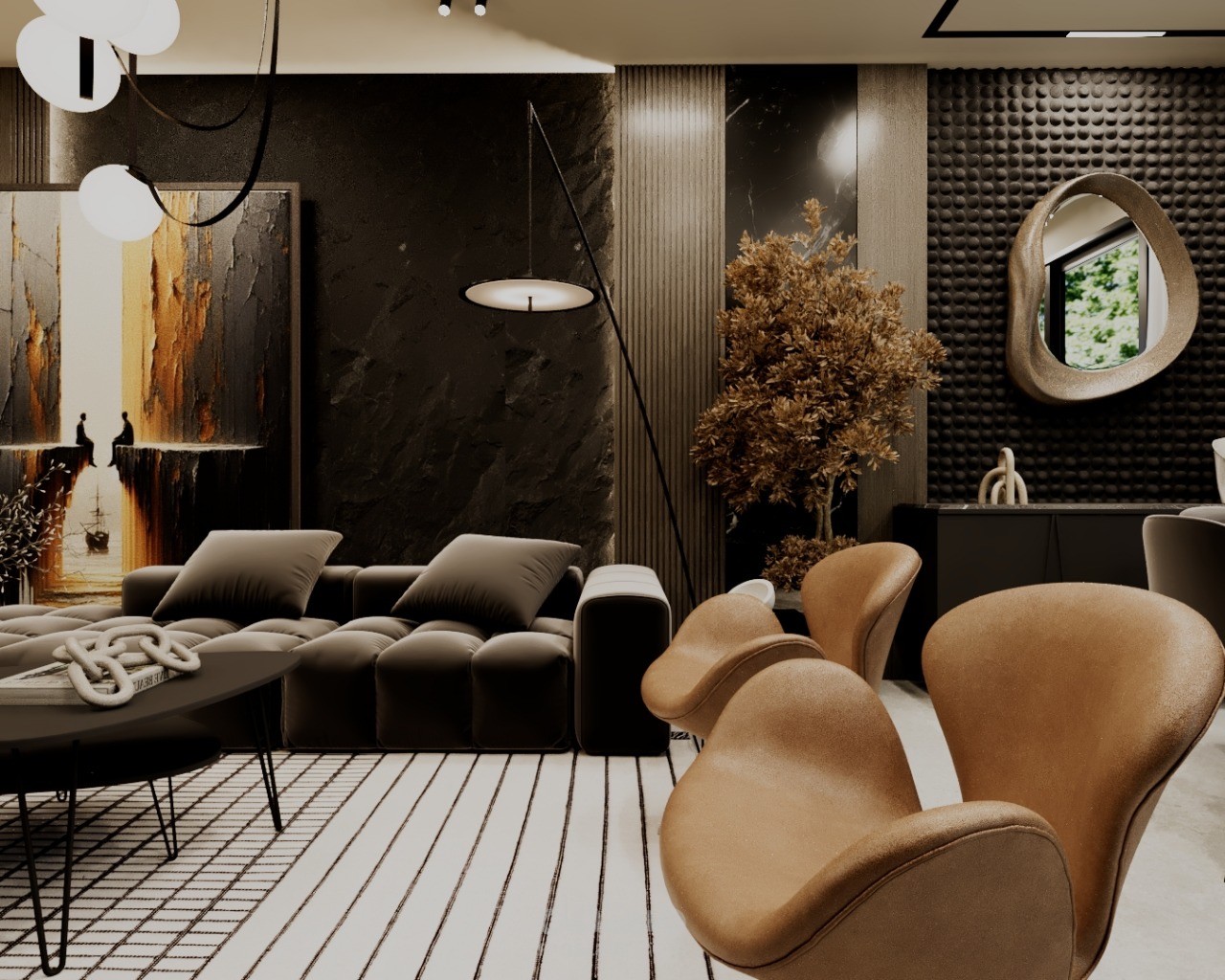 A modern residential apartment designed with a clean and elegant aesthetic, focusing on comfort and functionality. The concept combines neutral tones, warm wood finishes, and subtle accent details to create a balanced and inviting atmosphere.