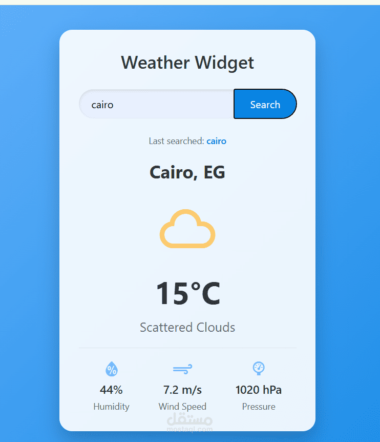 تطبيق ويب لعرض حالة الطقس بشكل فوري من خلال إدخال اسم المدينة، حيث يتم جلب البيانات مباشرة من API خارجي وعرضها بطريقة منظمة وسهلة القراءة. يركز المشروع على تقديم تجربة مستخدم بسيطة وسريعة مع تصميم عصري وواضح.
