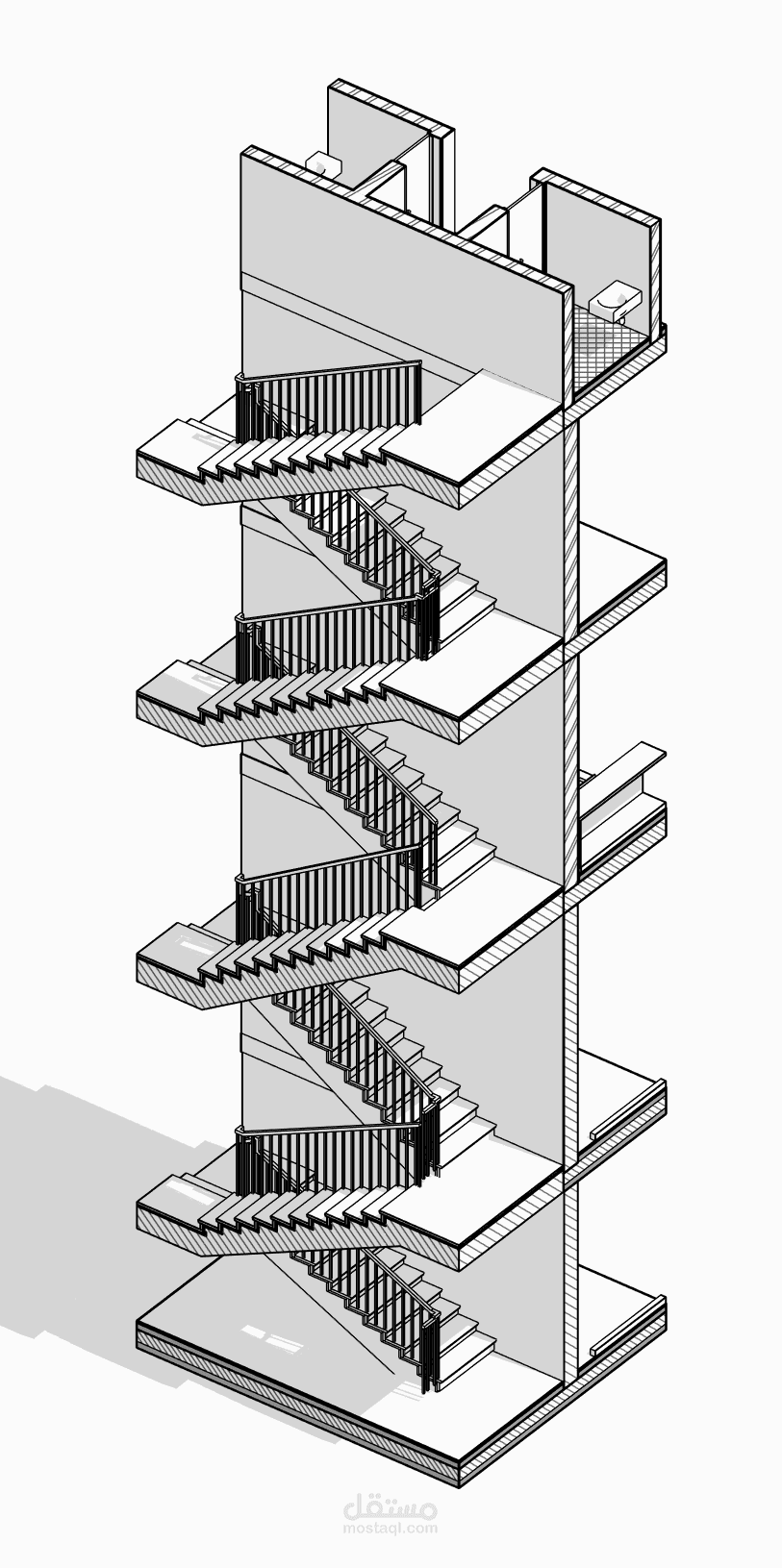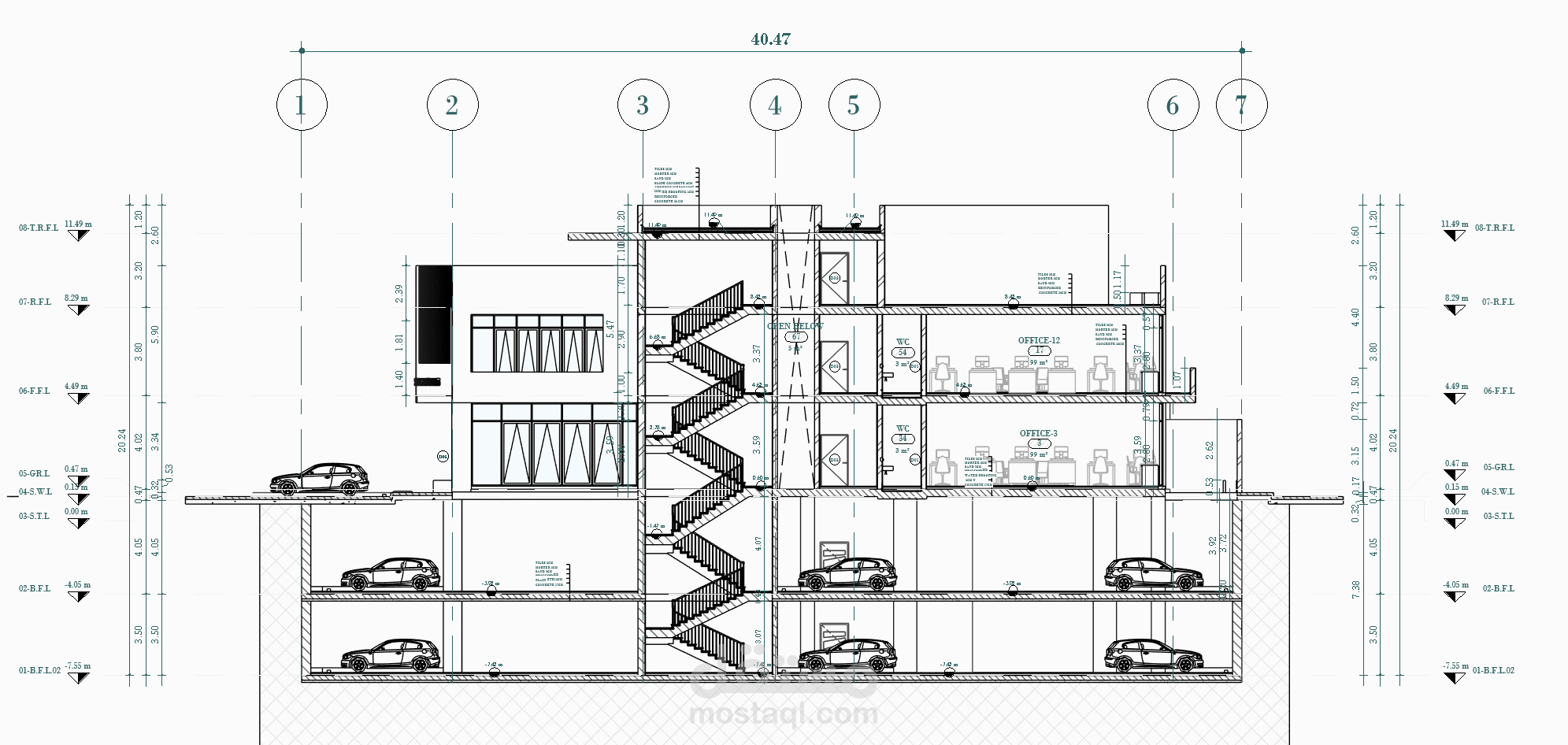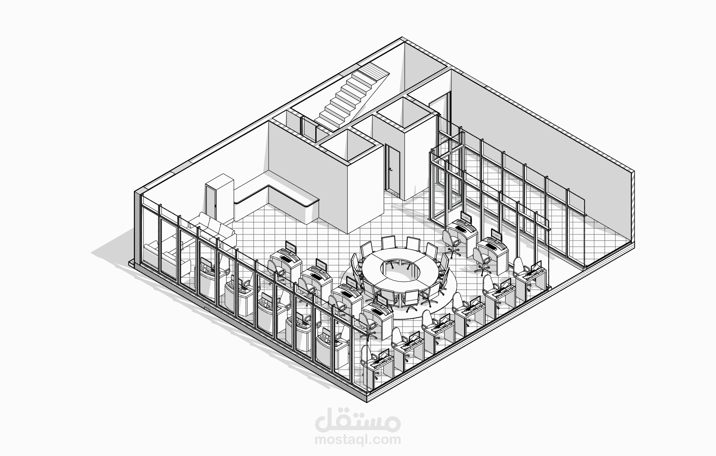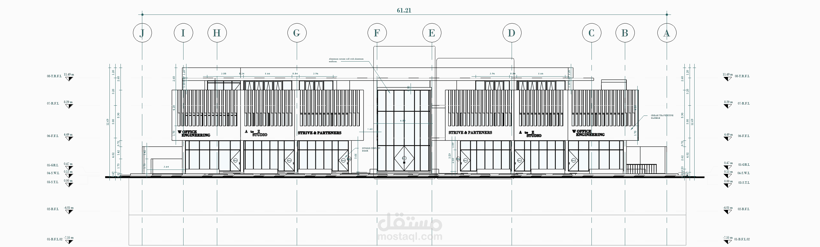 يستهدف هذا المشروع عمل الرسومات التفيذية المكونة من مساقط أفقية وقطاعات وواجهات وتفاصيل تنفيذية لطبقات التشطيب وطبقات السلالم لمبنى تجاري إداري