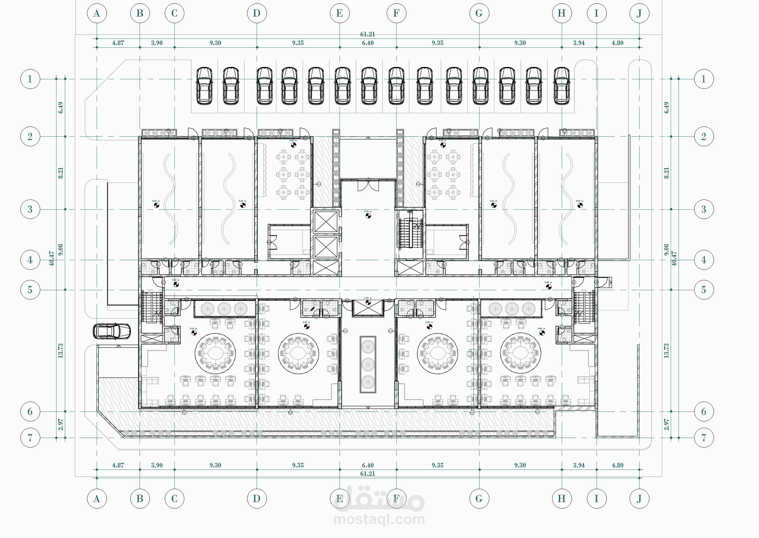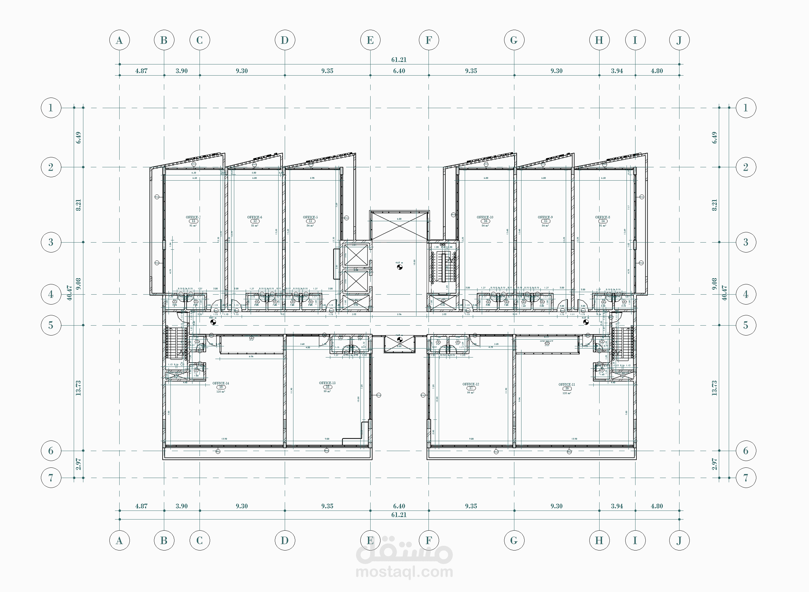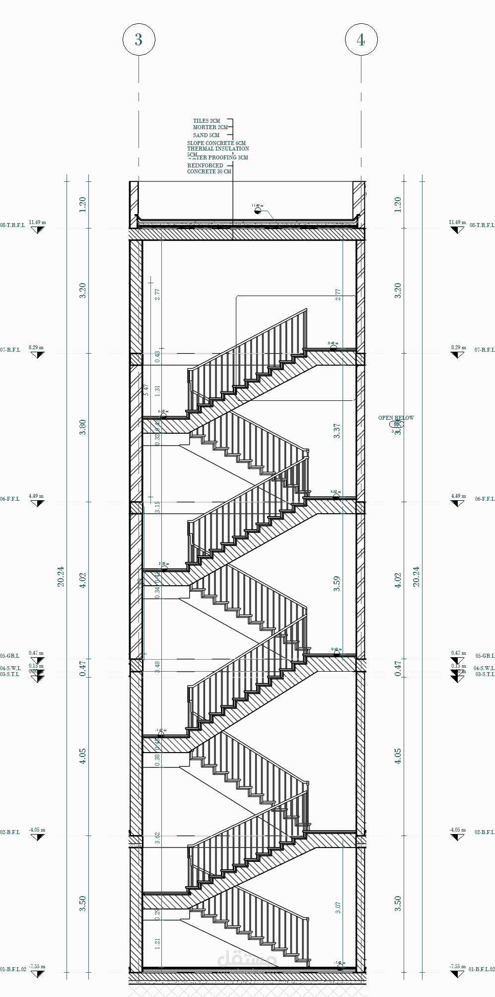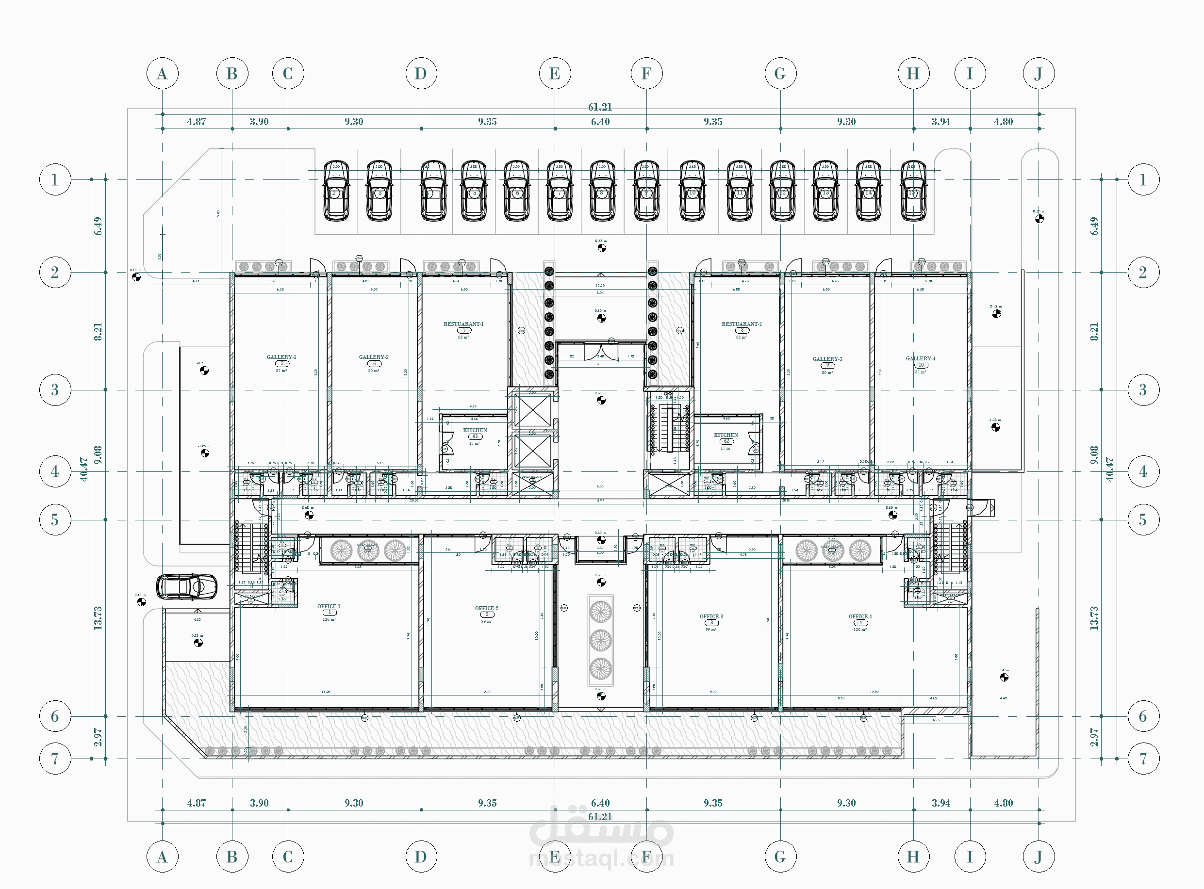 يستهدف هذا المشروع عمل الرسومات التفيذية المكونة من مساقط أفقية وقطاعات وواجهات وتفاصيل تنفيذية لطبقات التشطيب وطبقات السلالم لمبنى تجاري إداري
