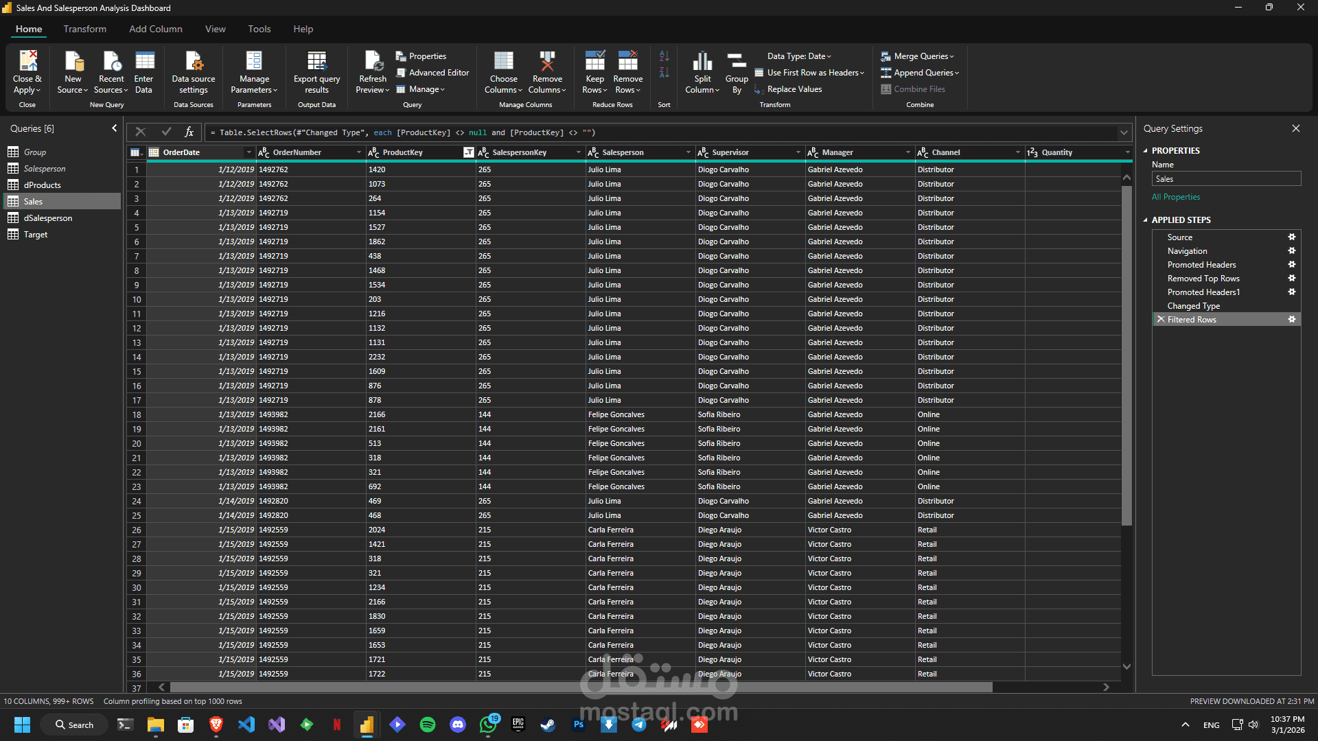 تحليل أداء المبيعات ومندوبي البيع باستخدام Power BI