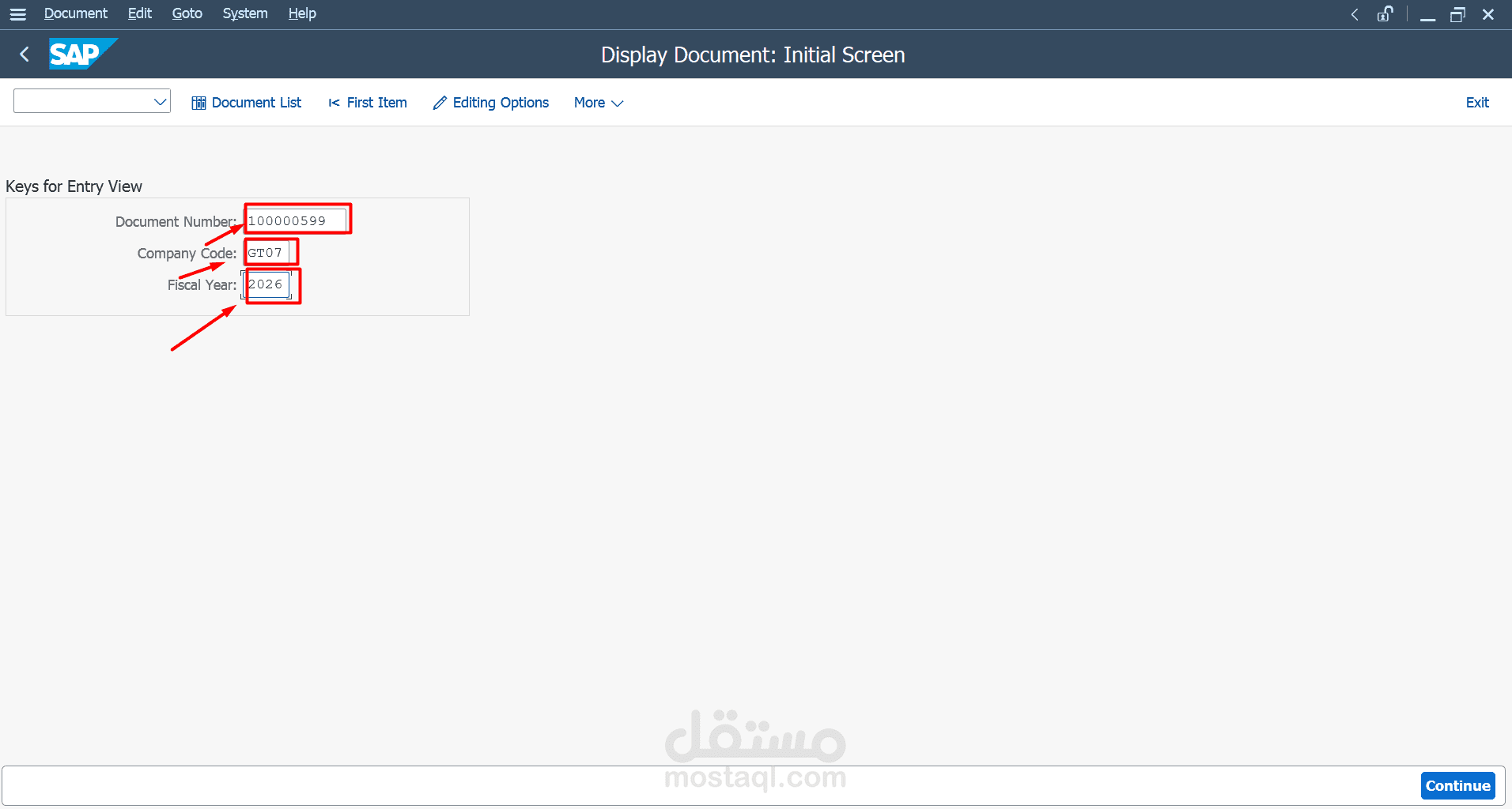 عرض ومراجعة المستندات المالية المسجلة على نظام SAP باستخدام Transaction Code: FB03، بهدف التحقق من صحة البيانات ومتابعة القيود المحاسبية دون إجراء أي تعديلات.