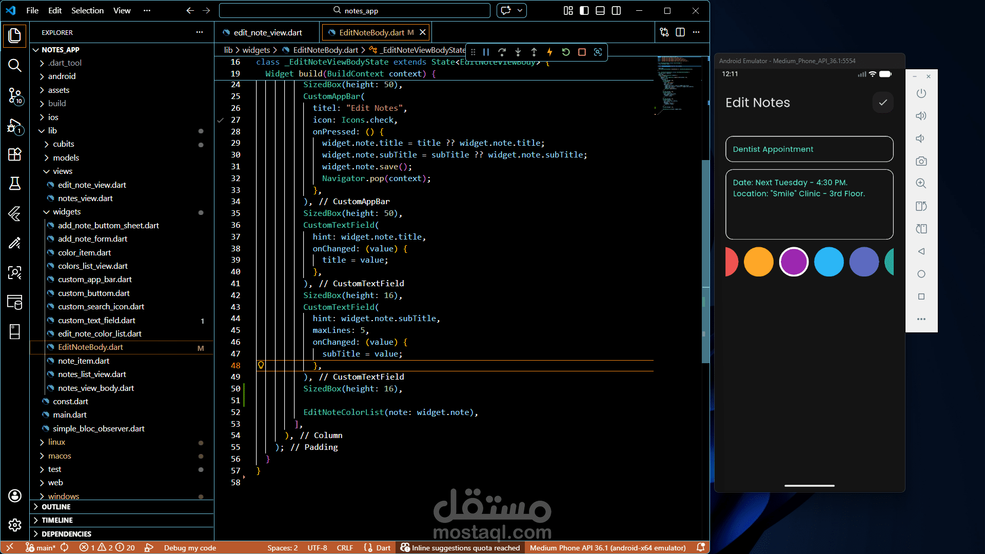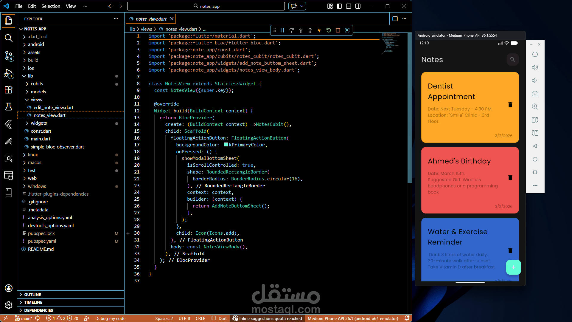 قمت بتطوير تطبيق بسيط وعملي لتدوين الملاحظات يتيح للمستخدم كتابة وحفظ الملاحظات بسهولة على الجهاز دون الحاجة إلى اتصال بالإنترنت. يركز التطبيق على السرعة وسهولة الاستخدام لمساعدة المستخدم على إدارة ملاحظاته اليومية بكفاءة.