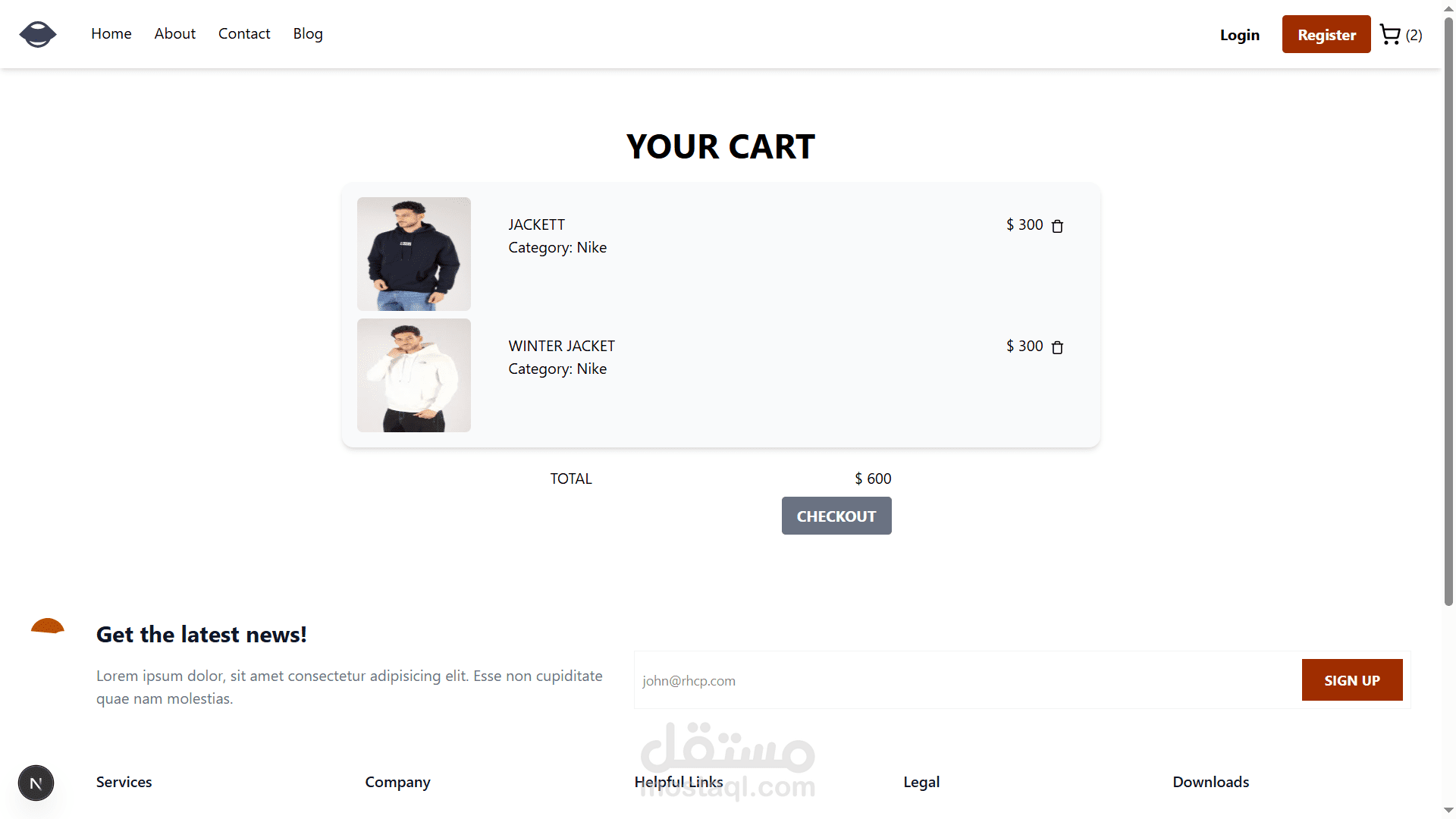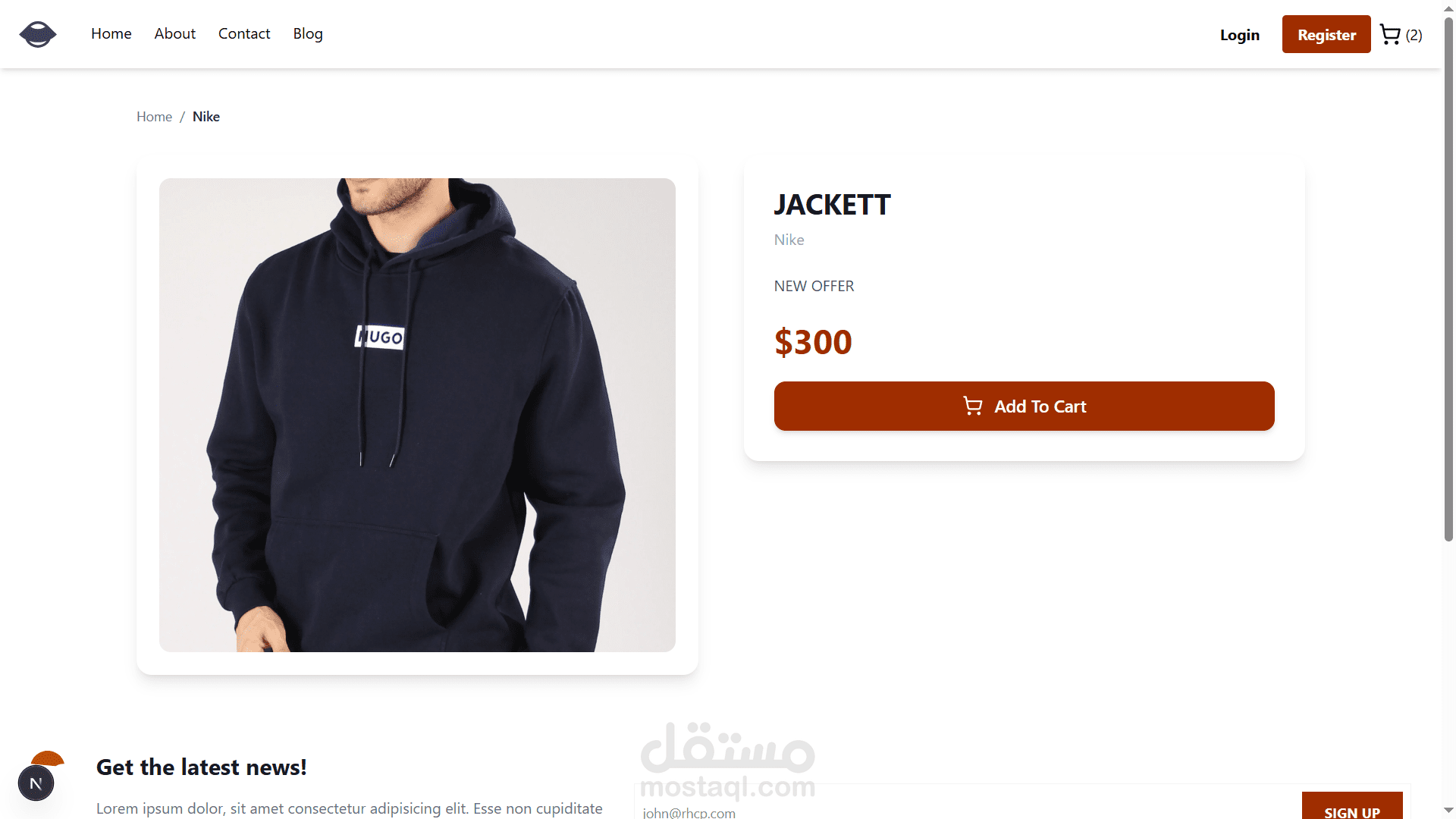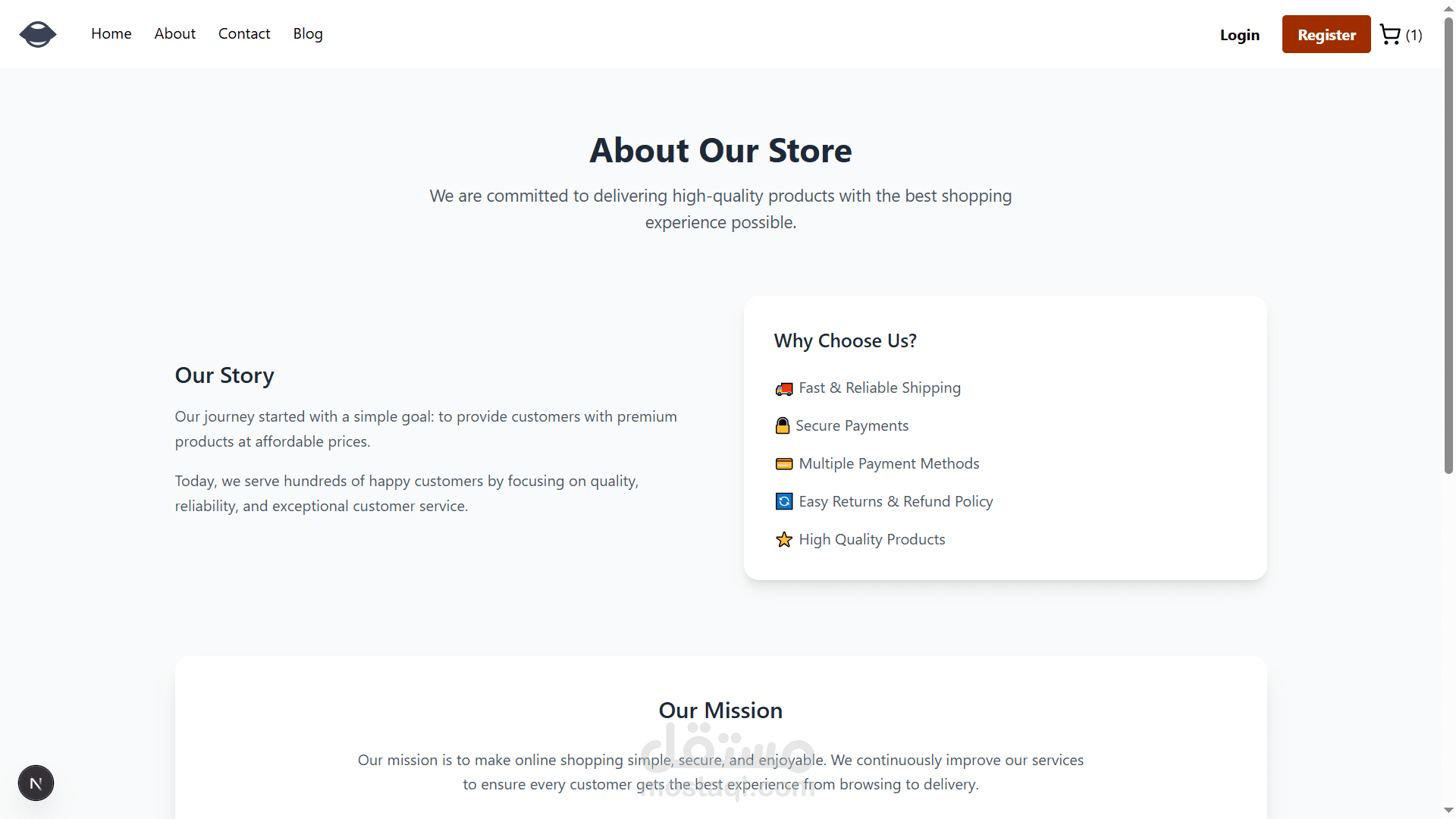 موقع تجارة إلكترونية لبيع الملابس تم تطويره باستخدام Next.js و React في الواجهة الأمامية، مع تصميم احترافي ومتجاوب باستخدام Tailwind CSS.