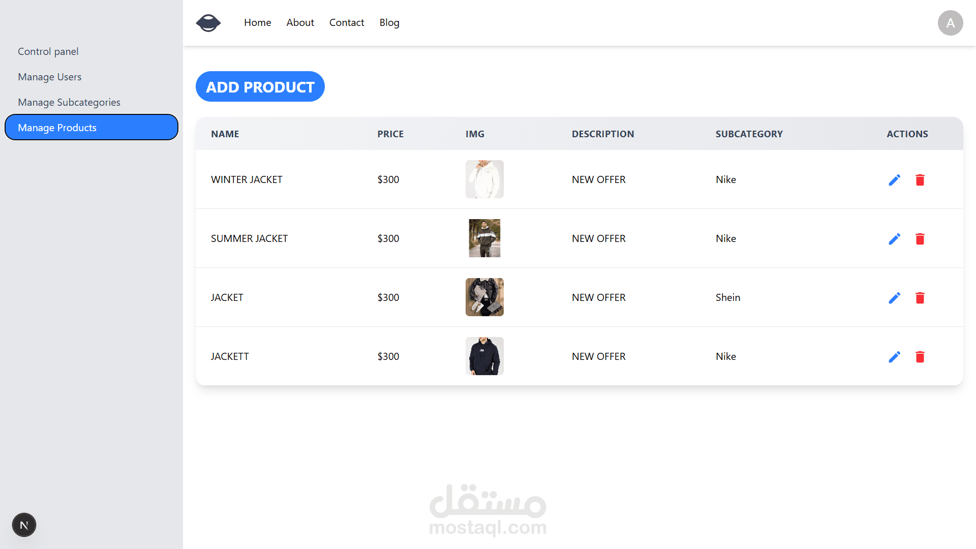 لوحة تحكم لإدارة المنتجات والطلبات