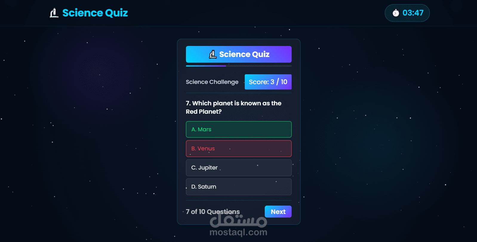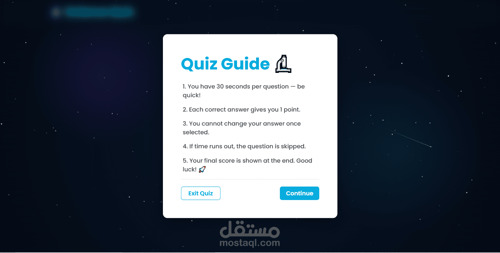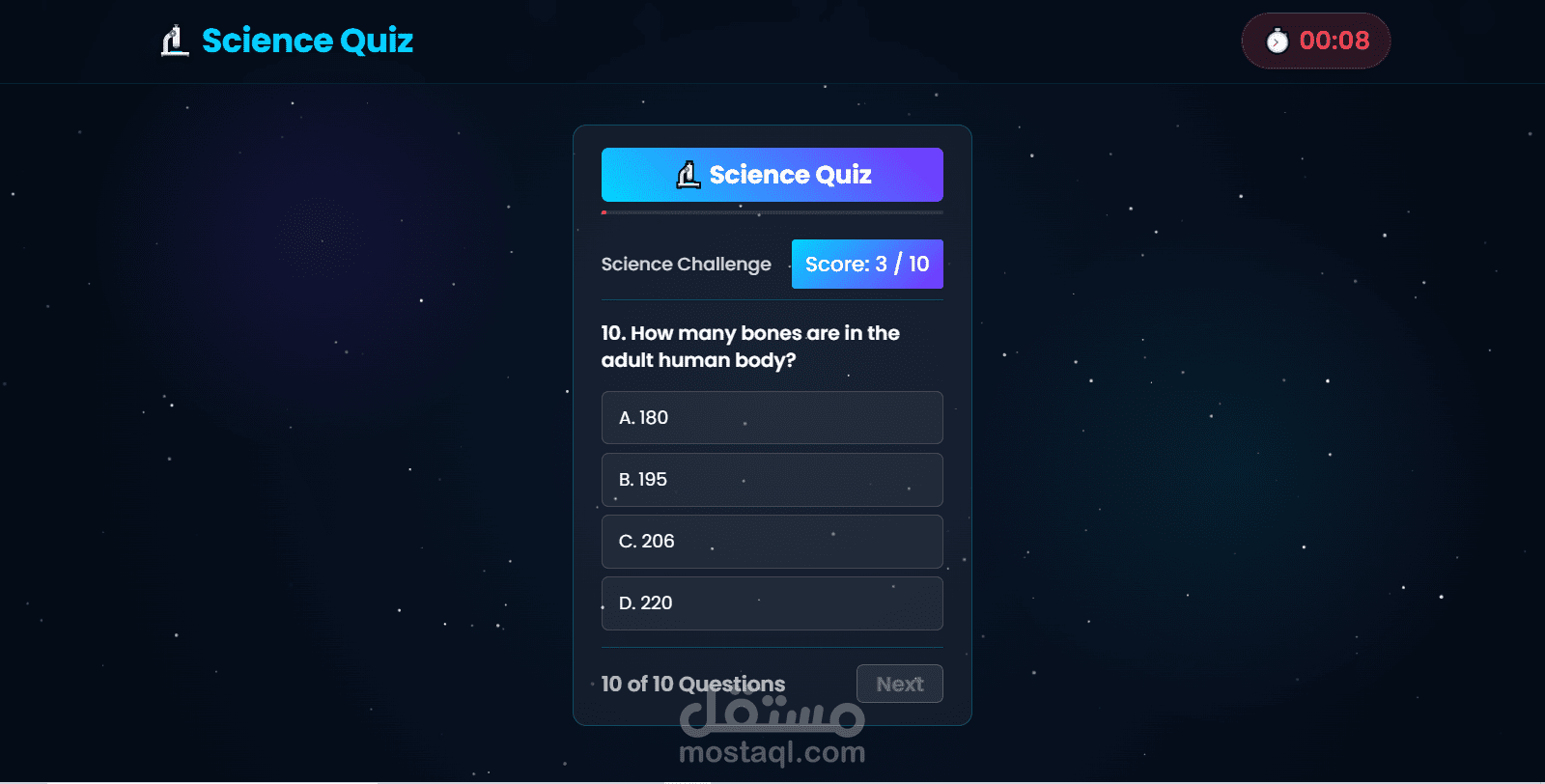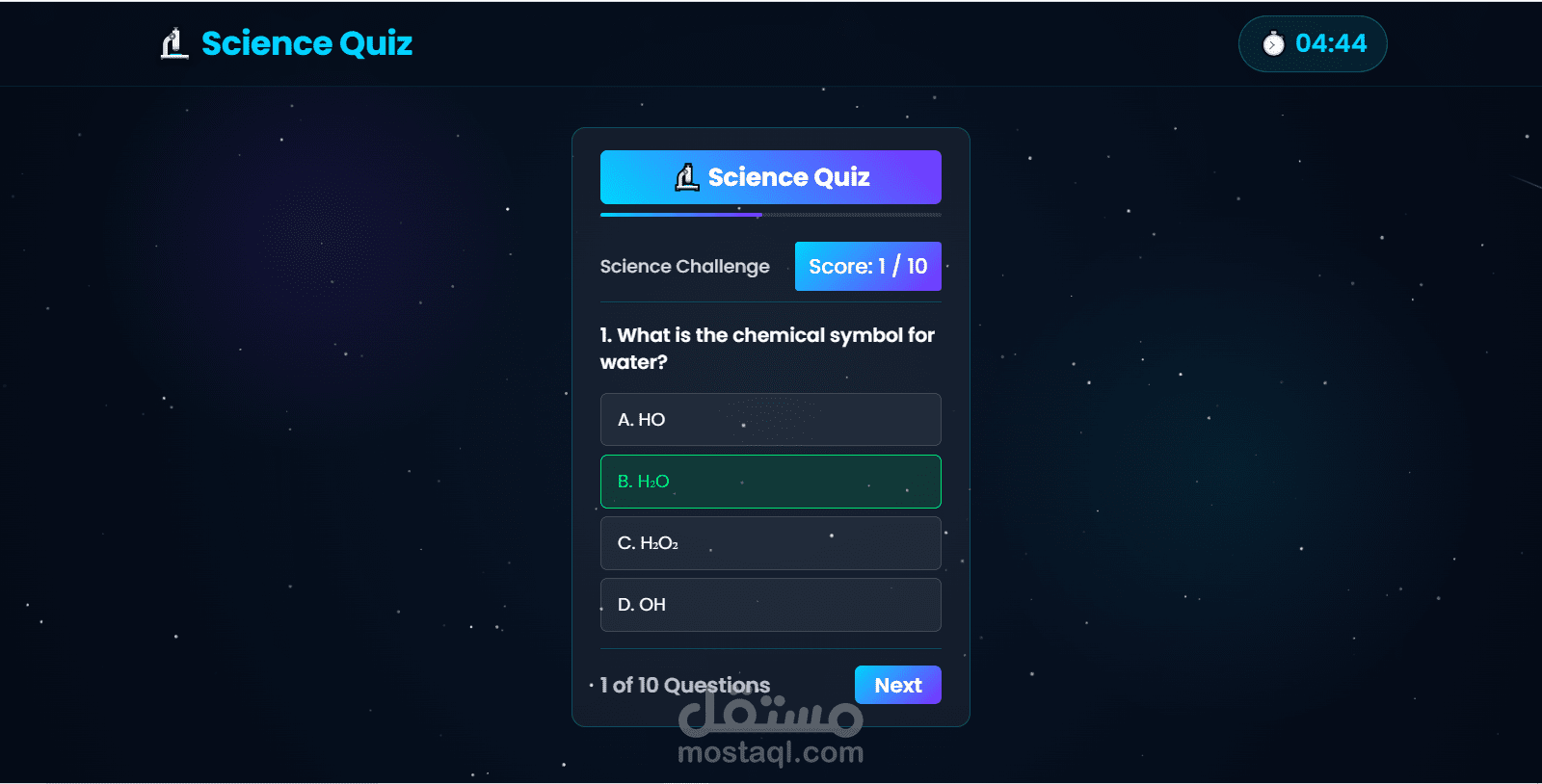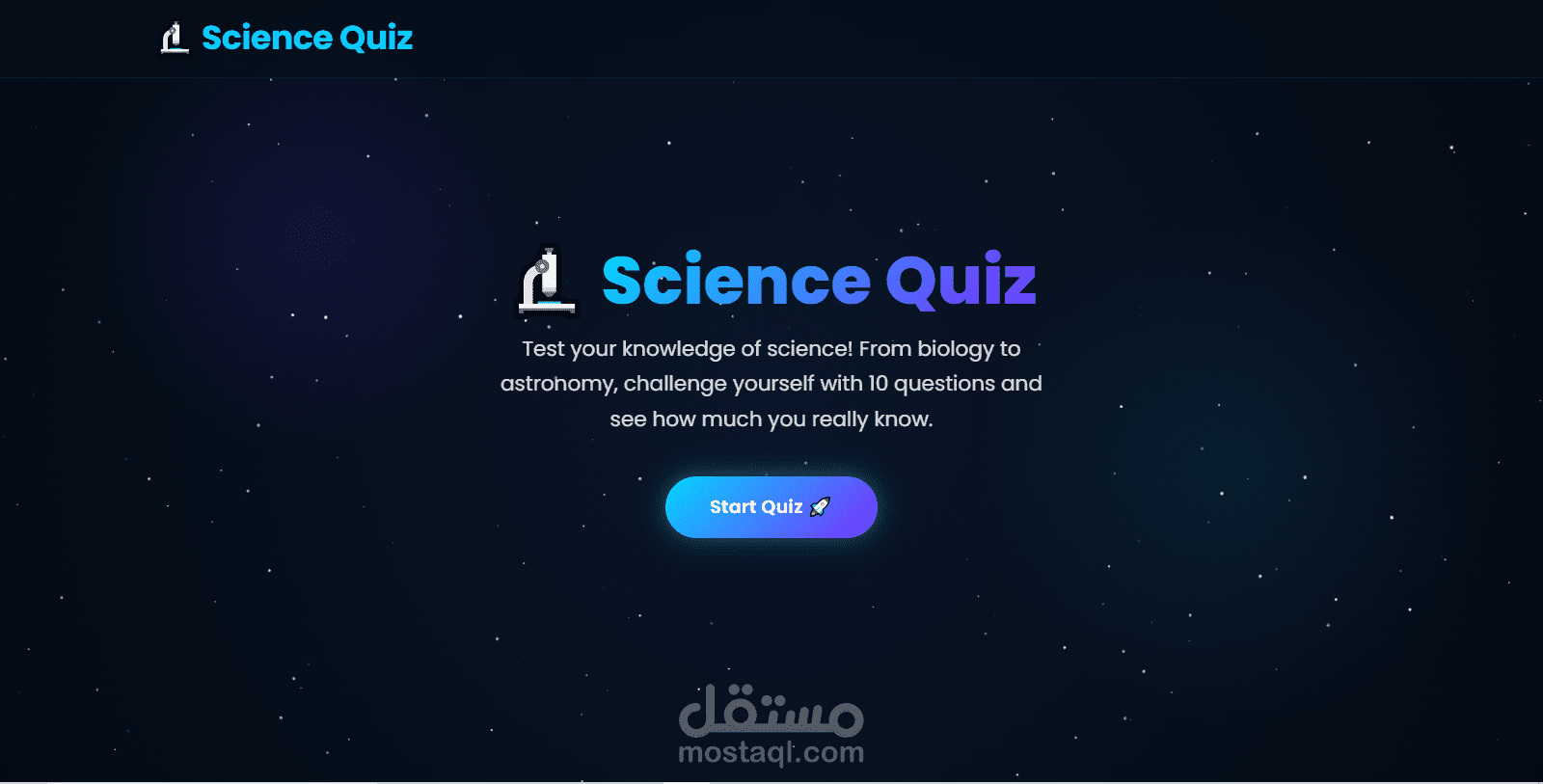 تطبيق ويب تفاعلي لاختبار المعلومات العلمية، مبني بـ React.js .