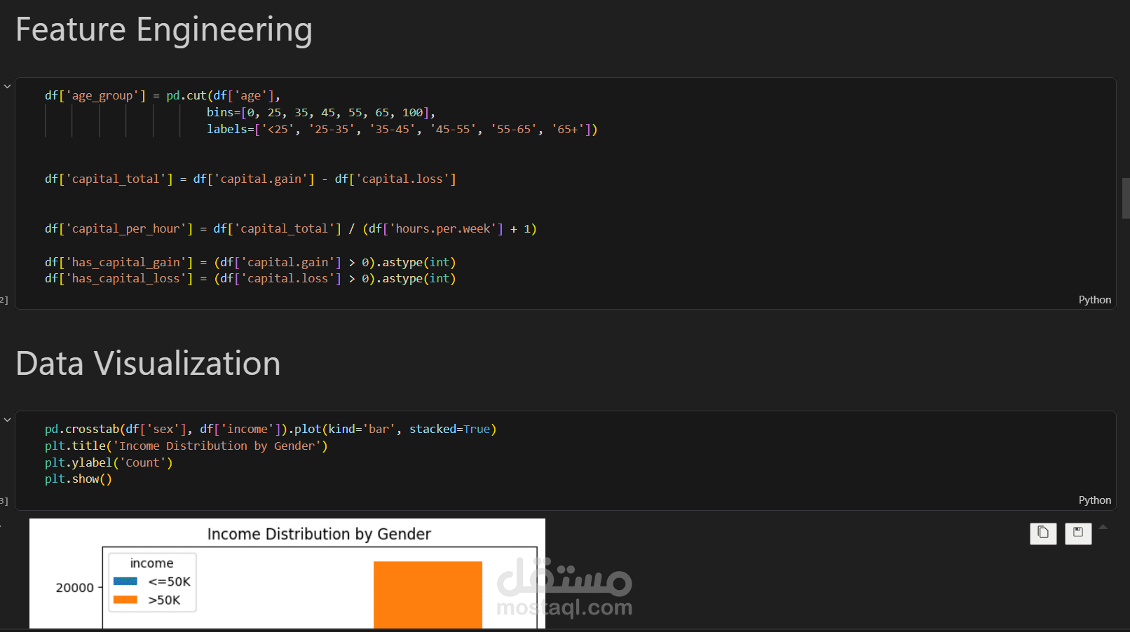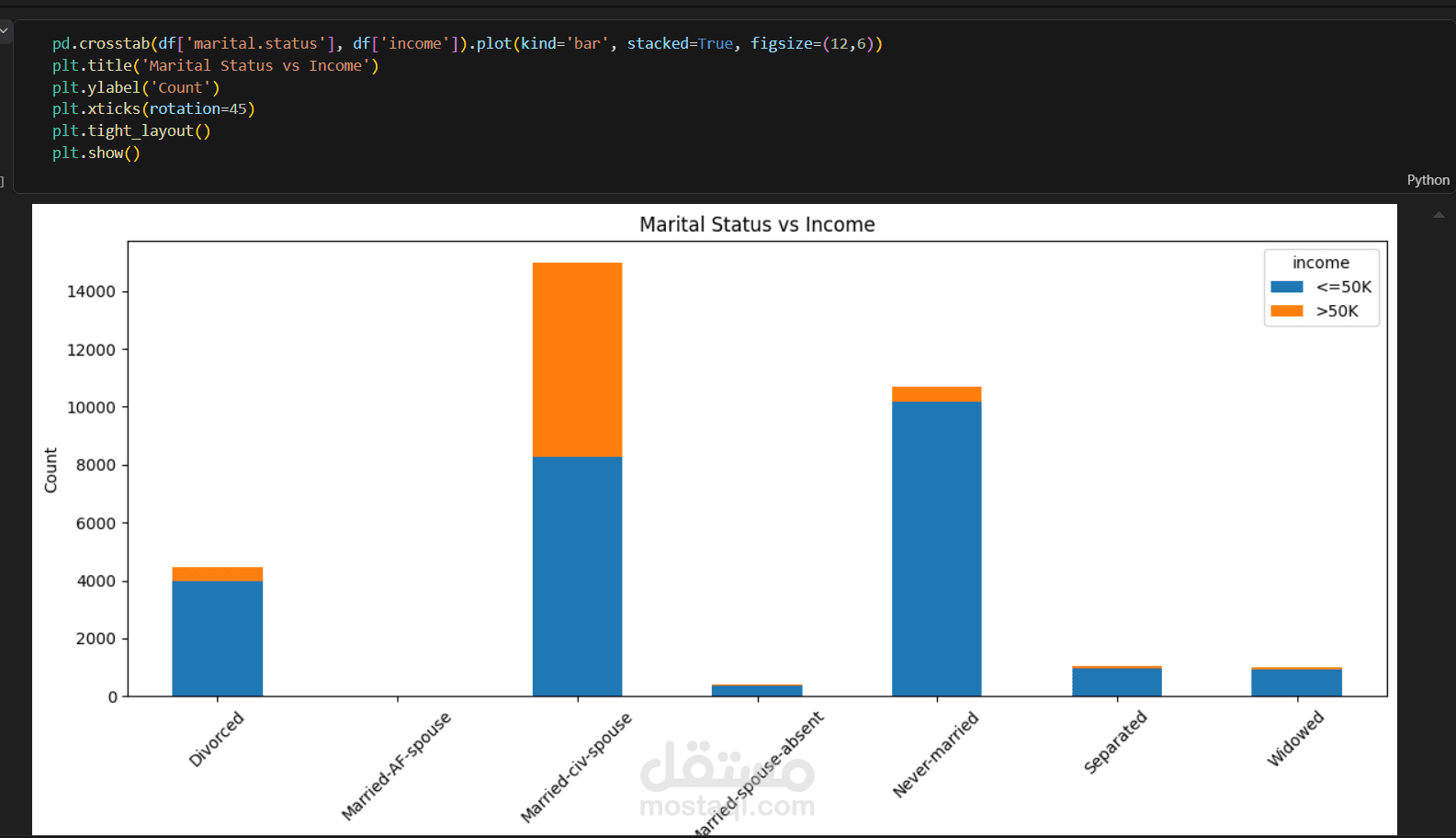 ذا المشروع يهدف إلى تحليل بيانات الأفراد وبناء نموذج تعلم آلي للتنبؤ بما إذا كان دخل الشخص أكبر أو أقل من 50K سنويًا اعتمادًا على مجموعة من الخصائص الديموغرافية والاقتصادية.