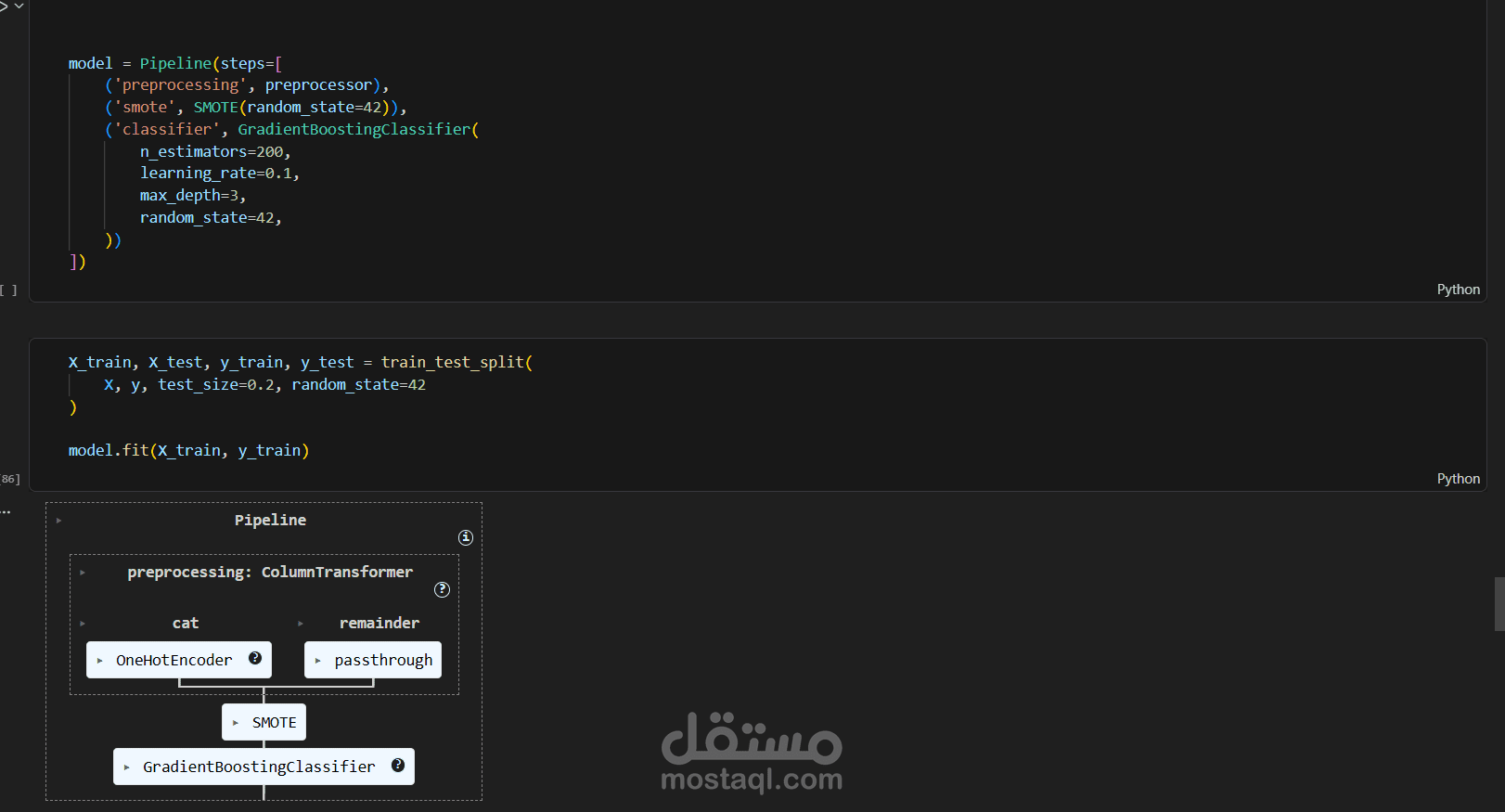 تم استخدام نموذج Gradient Boosting Classifier داخل Pipeline يحتوي على: