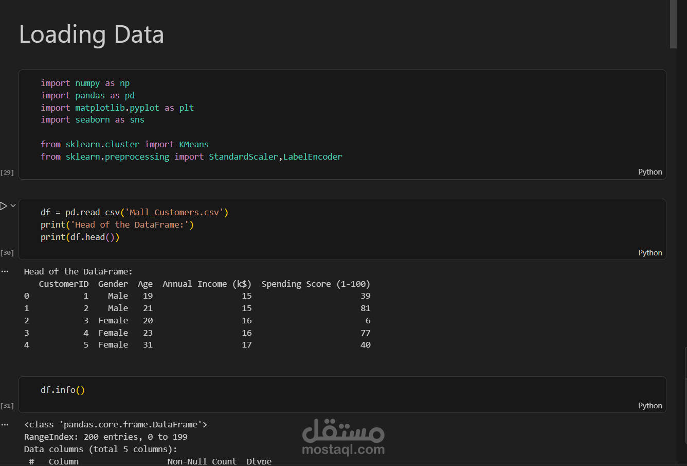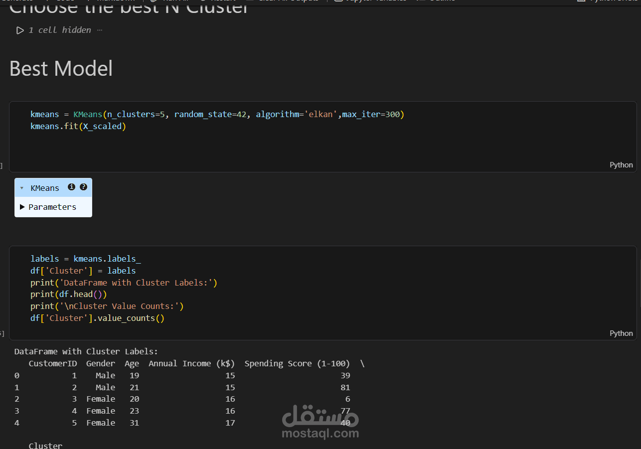 هو مشروع بسيط في Machine Learning هدفه تحليل عملاء مول (Customer Segmentation) باستخدام خوارزمية K-Means Clustering لتقسيم العملاء إلى مجموعات حسب سلوكهم الشرائي
