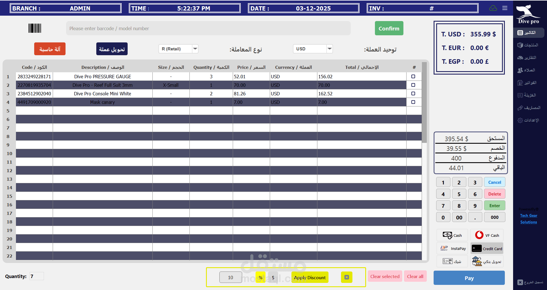 ?️ A custom multi-branch management system built for Dive Pro, a diving company operating in Hurghada and Sharm El-Sheikh. The system centralizes operations across branches through a real-time online server, handling bookings, accounting, and staff management with precision. Designed for efficiency, it automates workflows, synchronizes data between locations, and simplifies financial tracking with an integrated accounting tree.