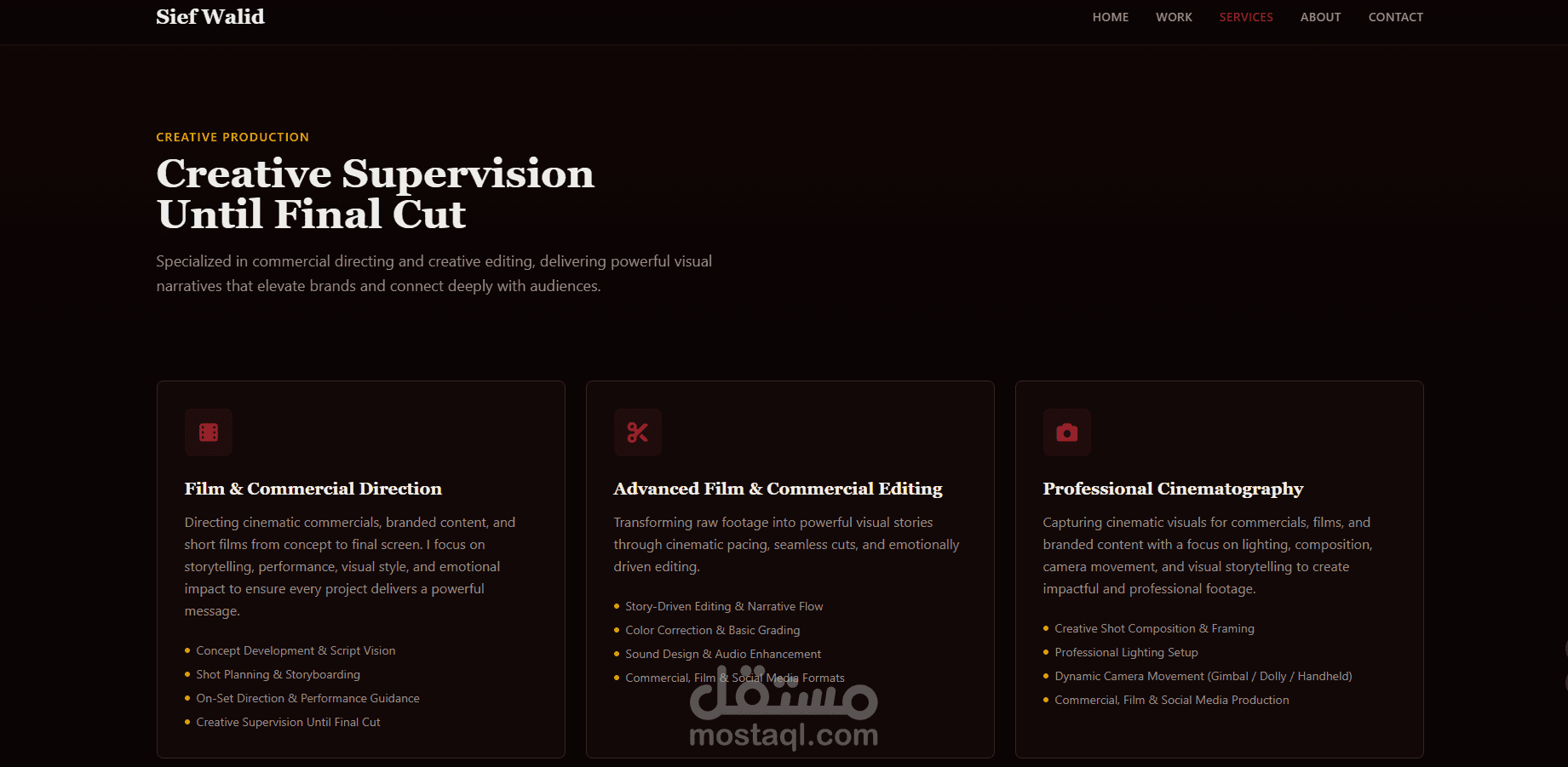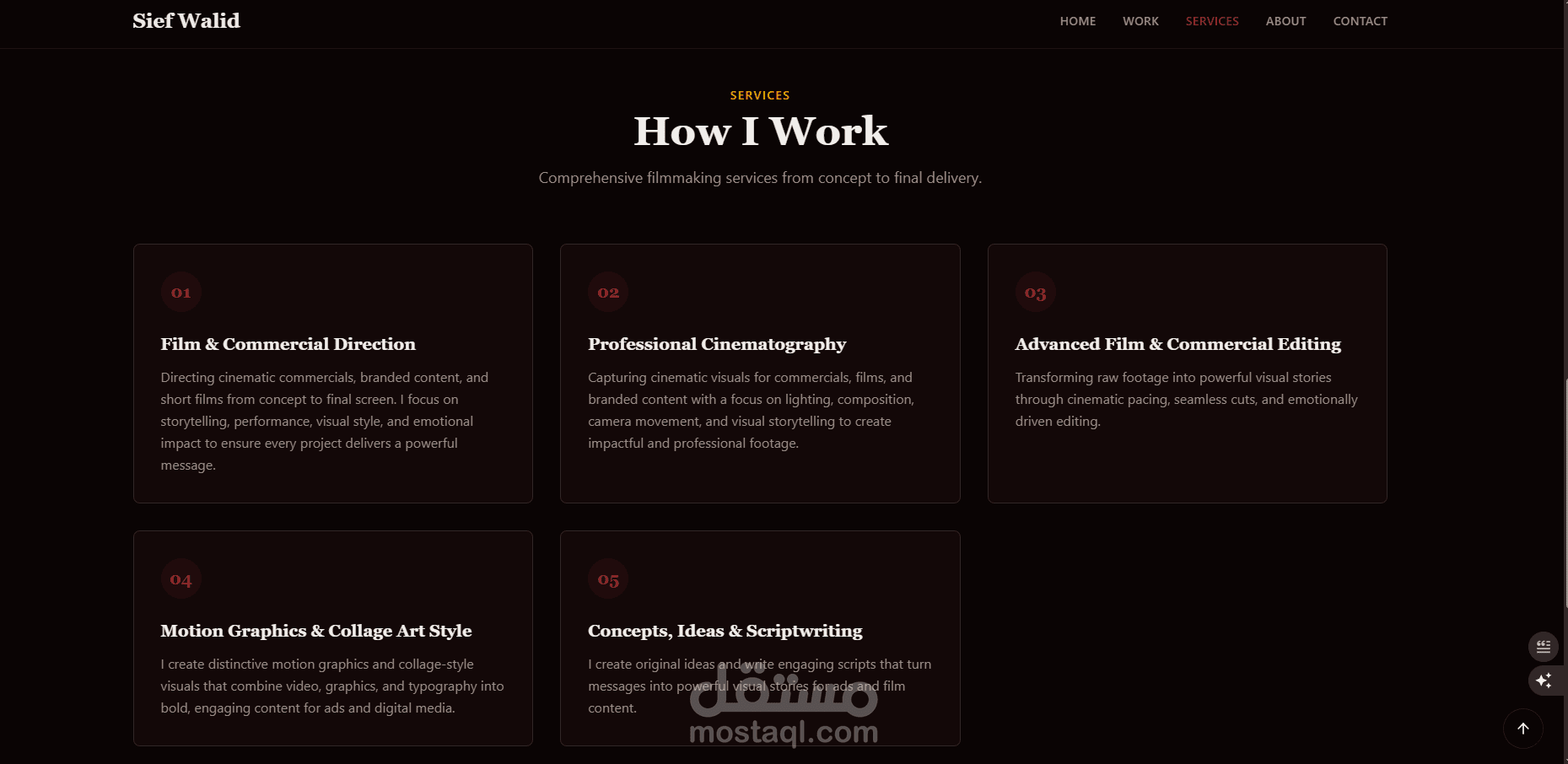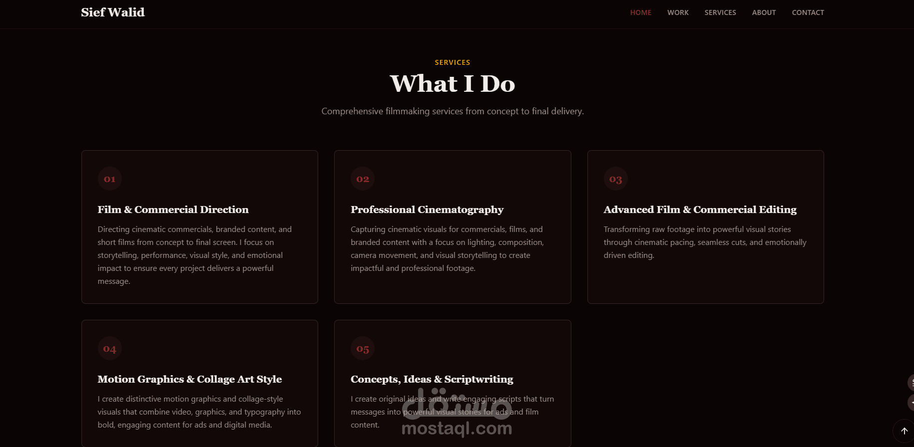 Fully dynamic multi-page structure (Home, Work, Services, About, Contact)