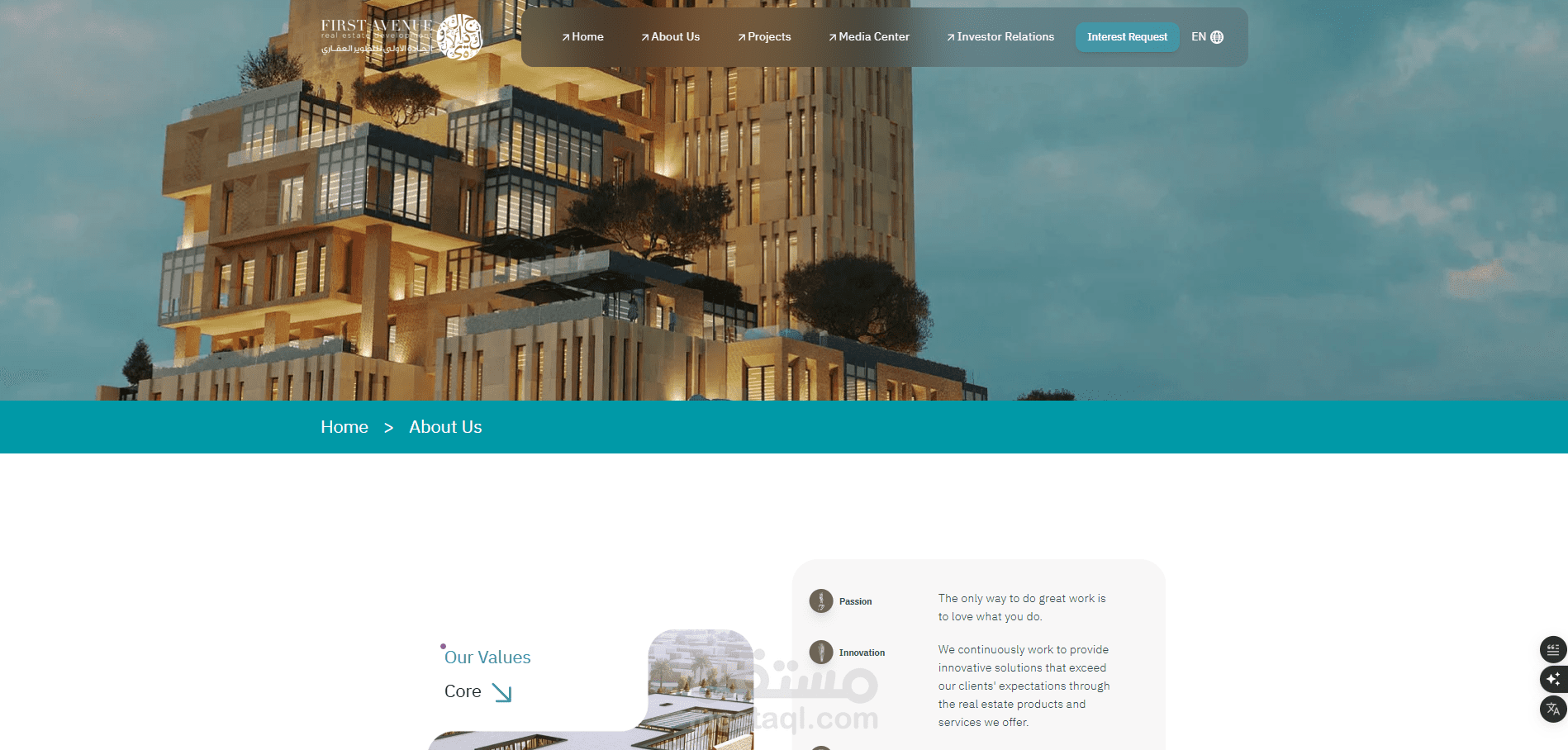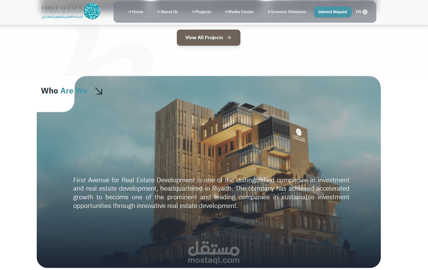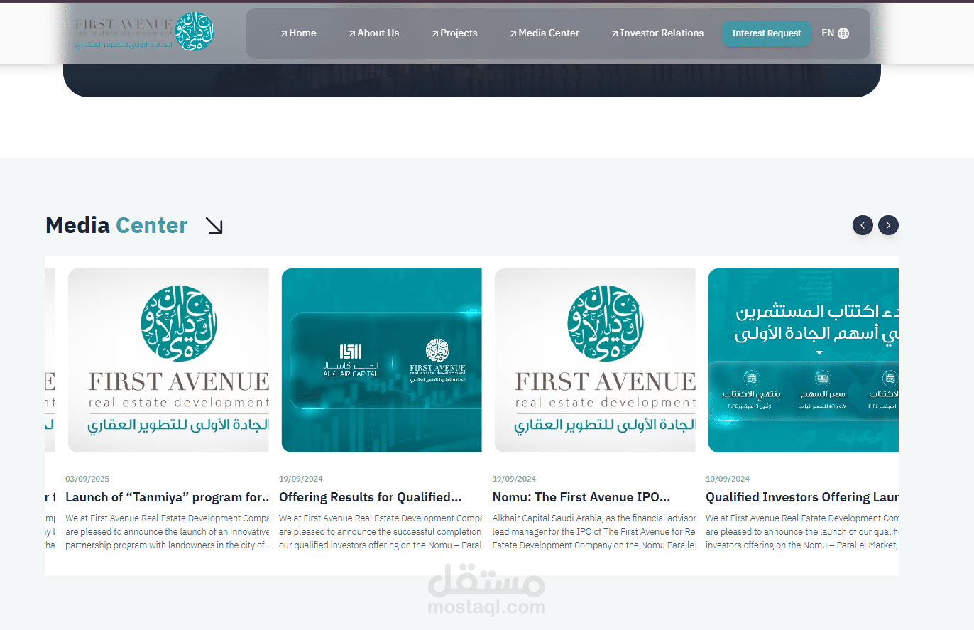 First Avenue is a dynamic real estate corporate website developed using Next.js to represent a real estate development company with a modern, scalable, and SEO-optimized digital presence.
