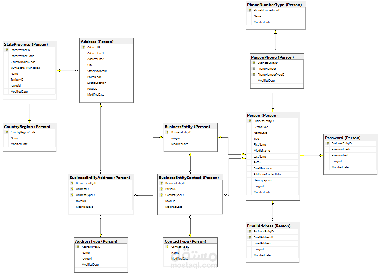 تم ربط الجداول باستخدام Primary Keys و Foreign Keys لضمان سلامة البيانات وتنظيم العلاقات بين الكيانات المختلفة داخل النظام.