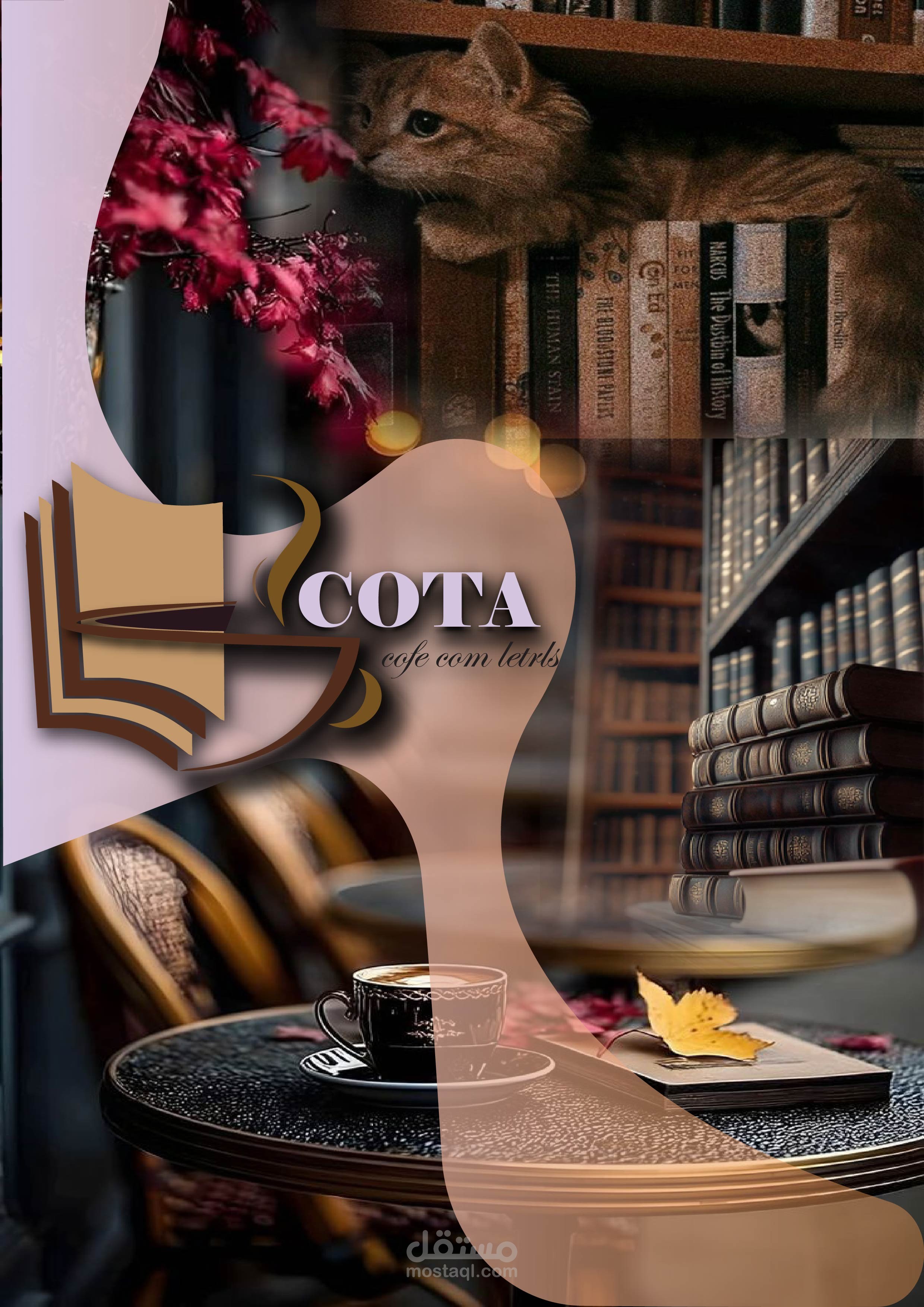 تصميم شعار يعكس الطابع العصري والدافئ للكافية والمكتبة مع البساطة وسهولة التذكر.