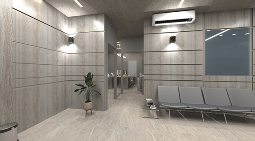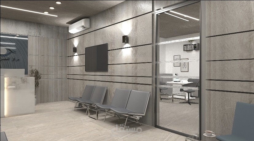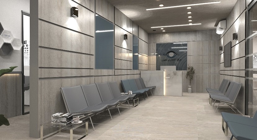A modern eye clinic designed with a warm and welcoming atmosphere.
