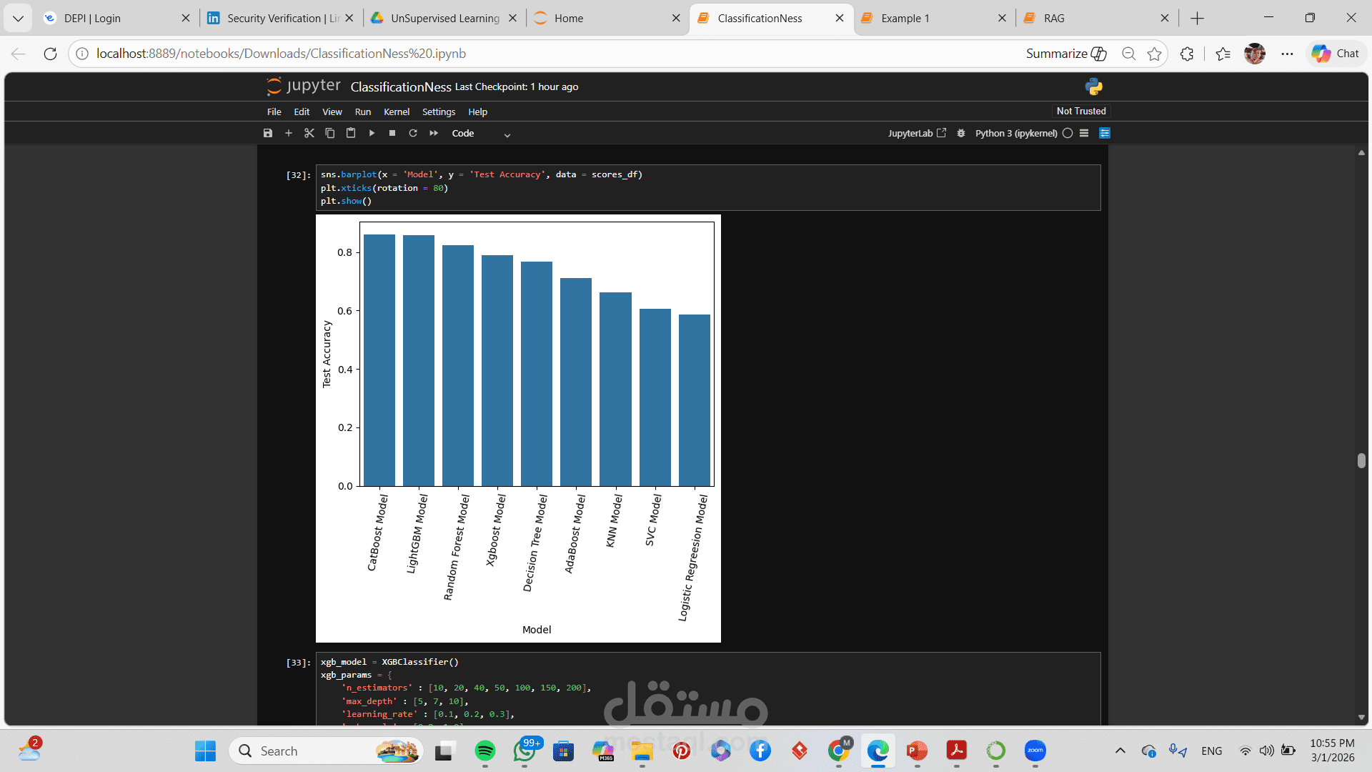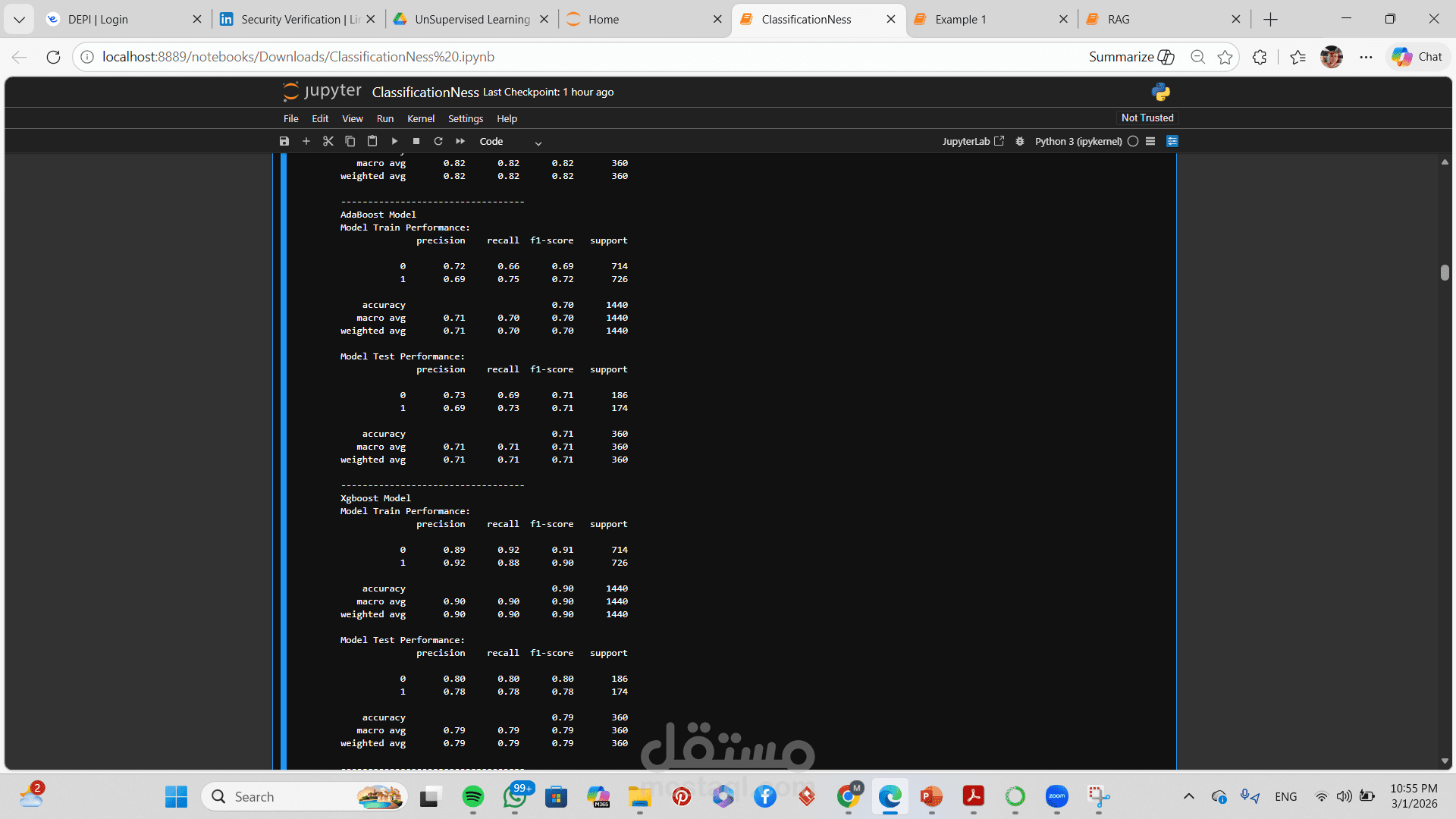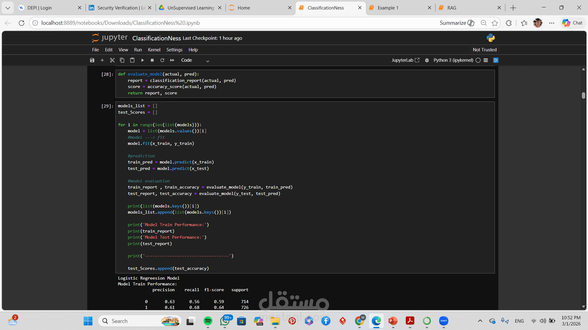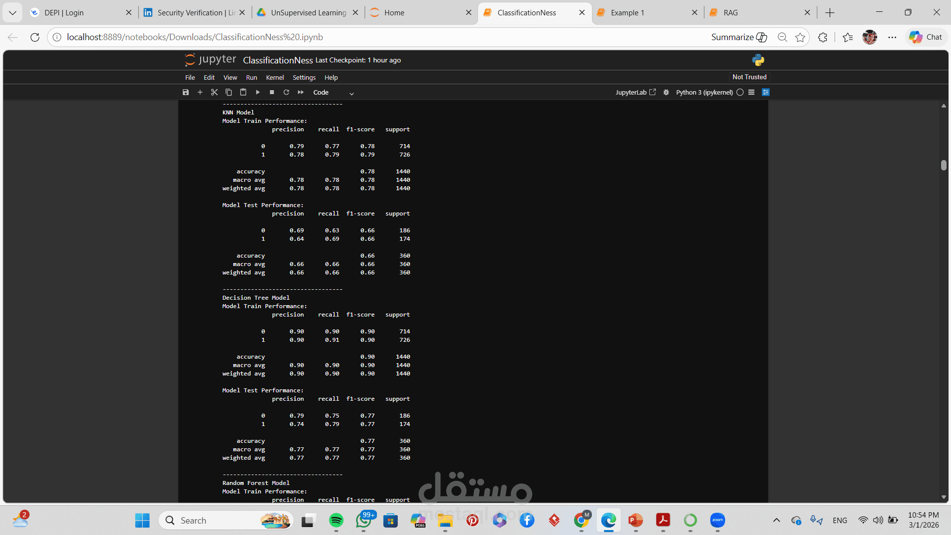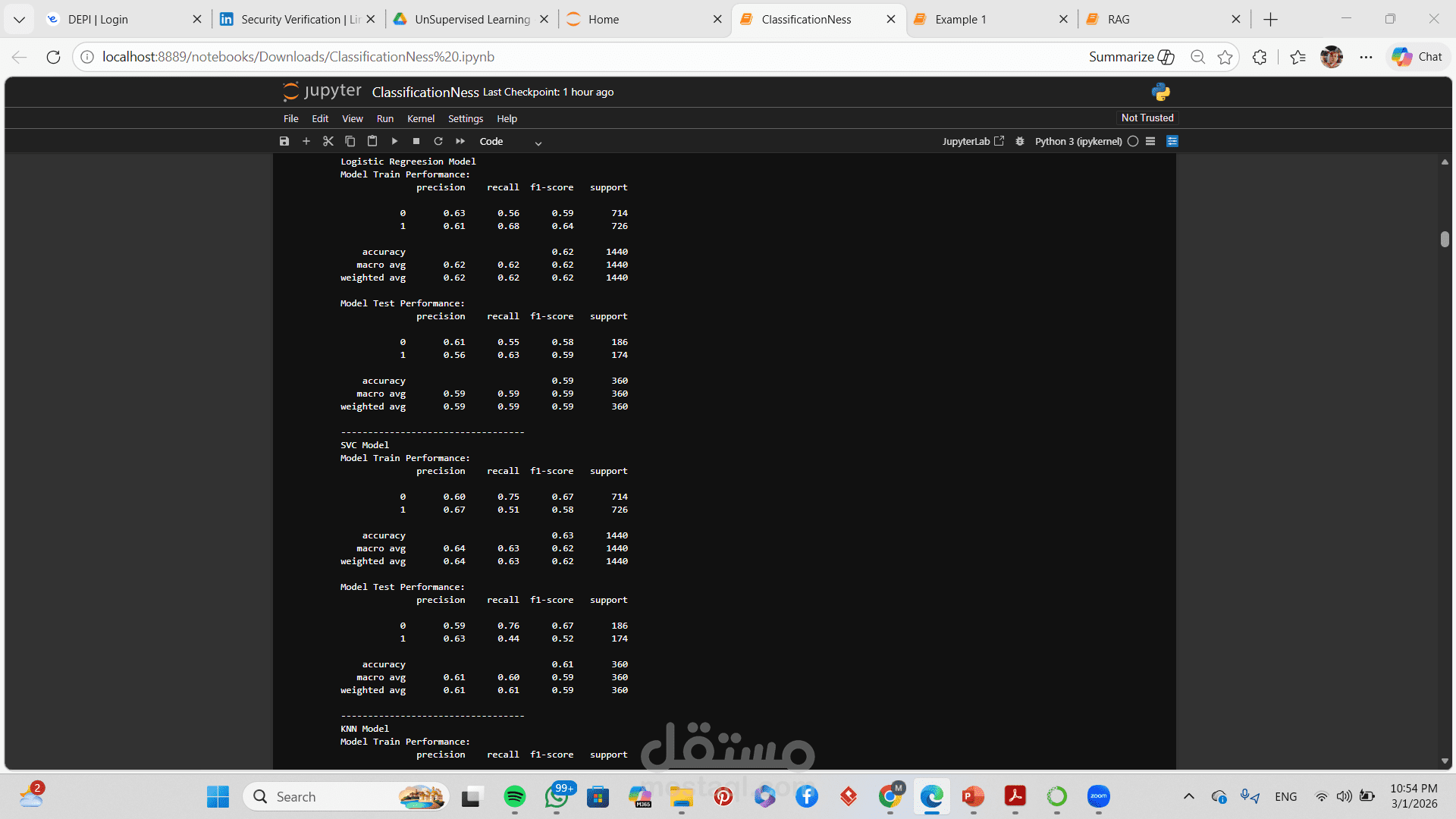 تطبيق أكثر من خوارزمية تصنيف (مثل Logistic Regression, Decision Tree, Random Forest, SVM)