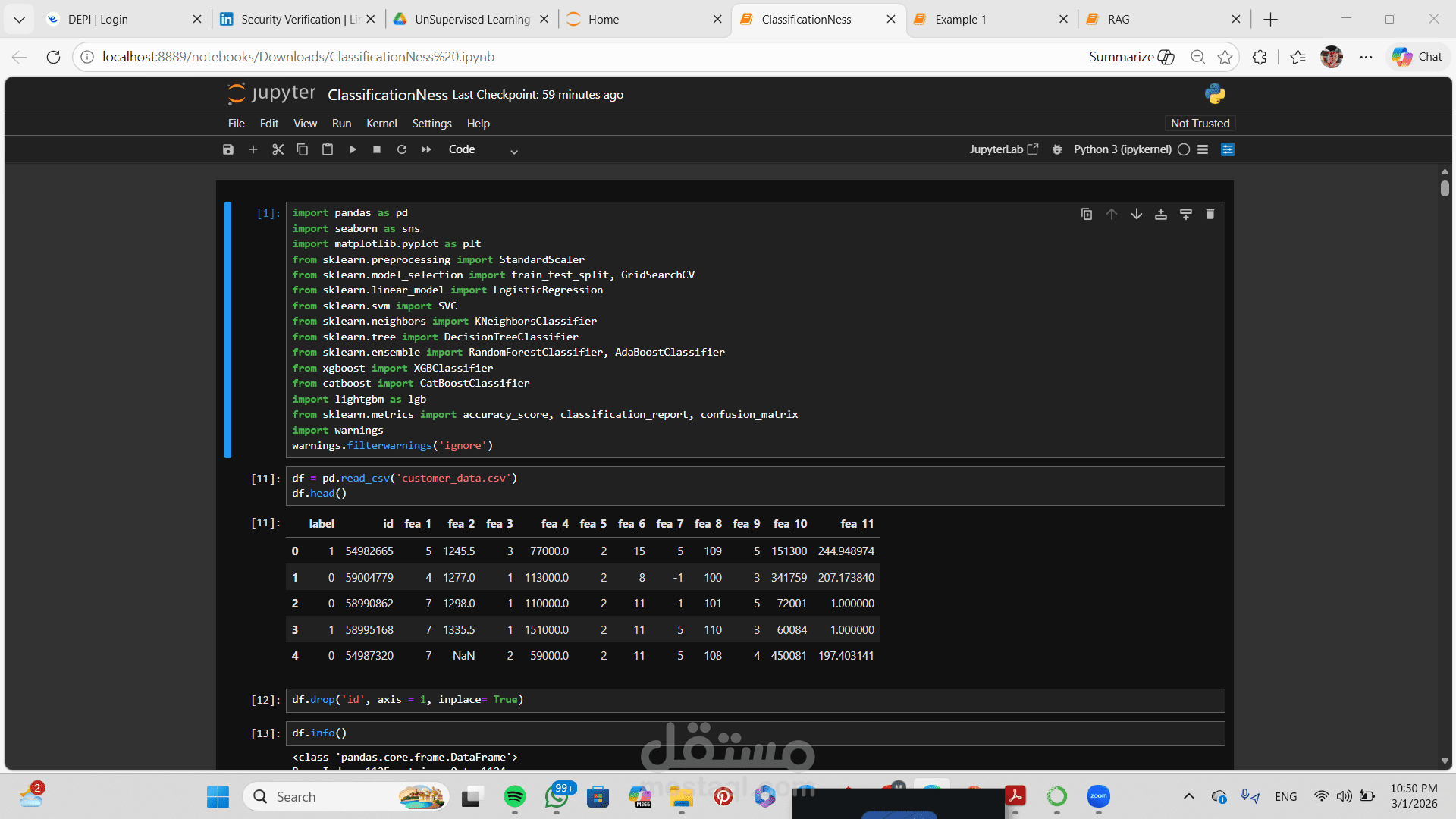 مشروع Machine Learning Classification يهدف إلى تصنيف البيانات إلى فئات محددة بناءً على مجموعة من الخصائص (Features).