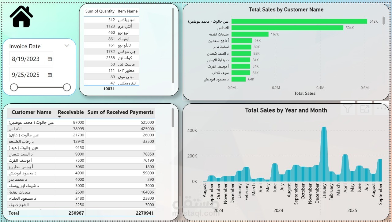 إجمالي المبيعات الشهرية والسنوية.