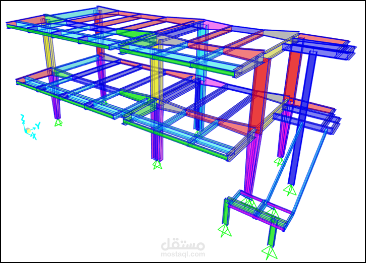 قمت بتصميم مبنى مكاتب صغير بنظام الميزانين ملحق بالمبنى الرئيسي لصالح شركة STC بالدمام، شمل المشروع تصميم الإطارات والميزانين والسلالم الصغيرة، بالإضافة إلى التحليل الإنشائي وحساب الأحمال طبقاً للكود السعودي للبناء (SBC). تم تنفيذ التحليل والتصميم باستخدام برامج SAP2000 وIDEA StatiCa وRAM Connection وCFS لضمان الأمان والكفاءة وسهولة التنفيذ.