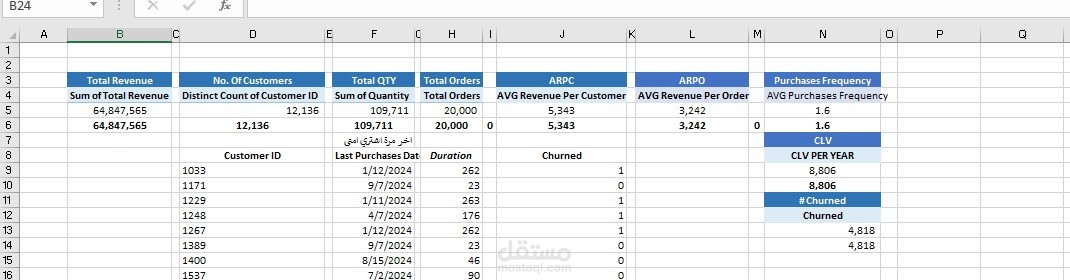 "داشبورد تفاعلية بتحلل كل ربح داخل للشركة (Revenue)، وبتراقب سلوك العملاء، وبتحسب نسبة 'العملاء اللي سابونا' (Churn Rate)، ده غير إنها بتوضح أكتر طرق الدفع استخداماً، وإيه المنتجات اللي شايلة المبيعات، وتتبع حركة البيع شهر بشهر.