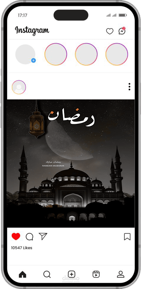 قمت بتصميم بوست تهنئة بمناسبة شهر رمضان المبارك بأسلوب بصري سينمائي يعكس أجواء روحانية هادئة.