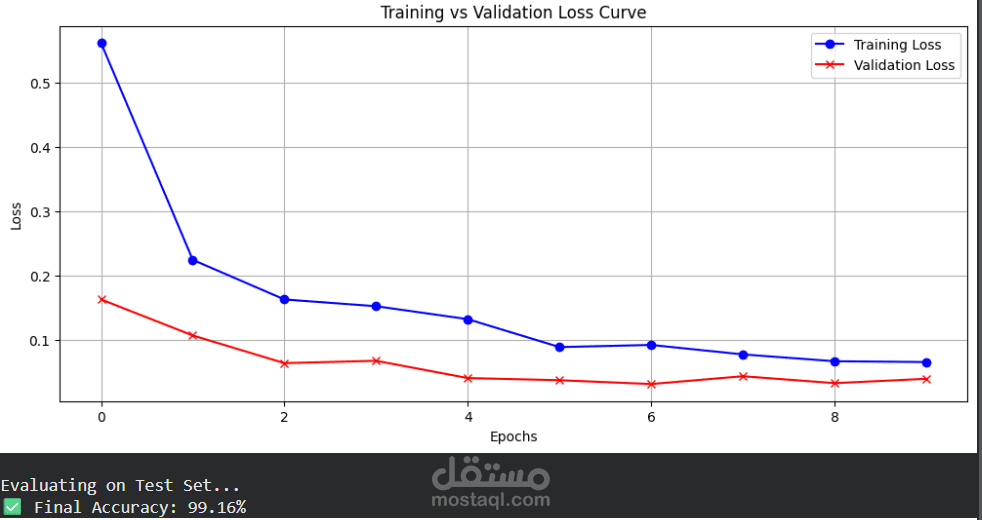 حقق النموذج دقة وصلت إلى 97% على بيانات الاختبار.