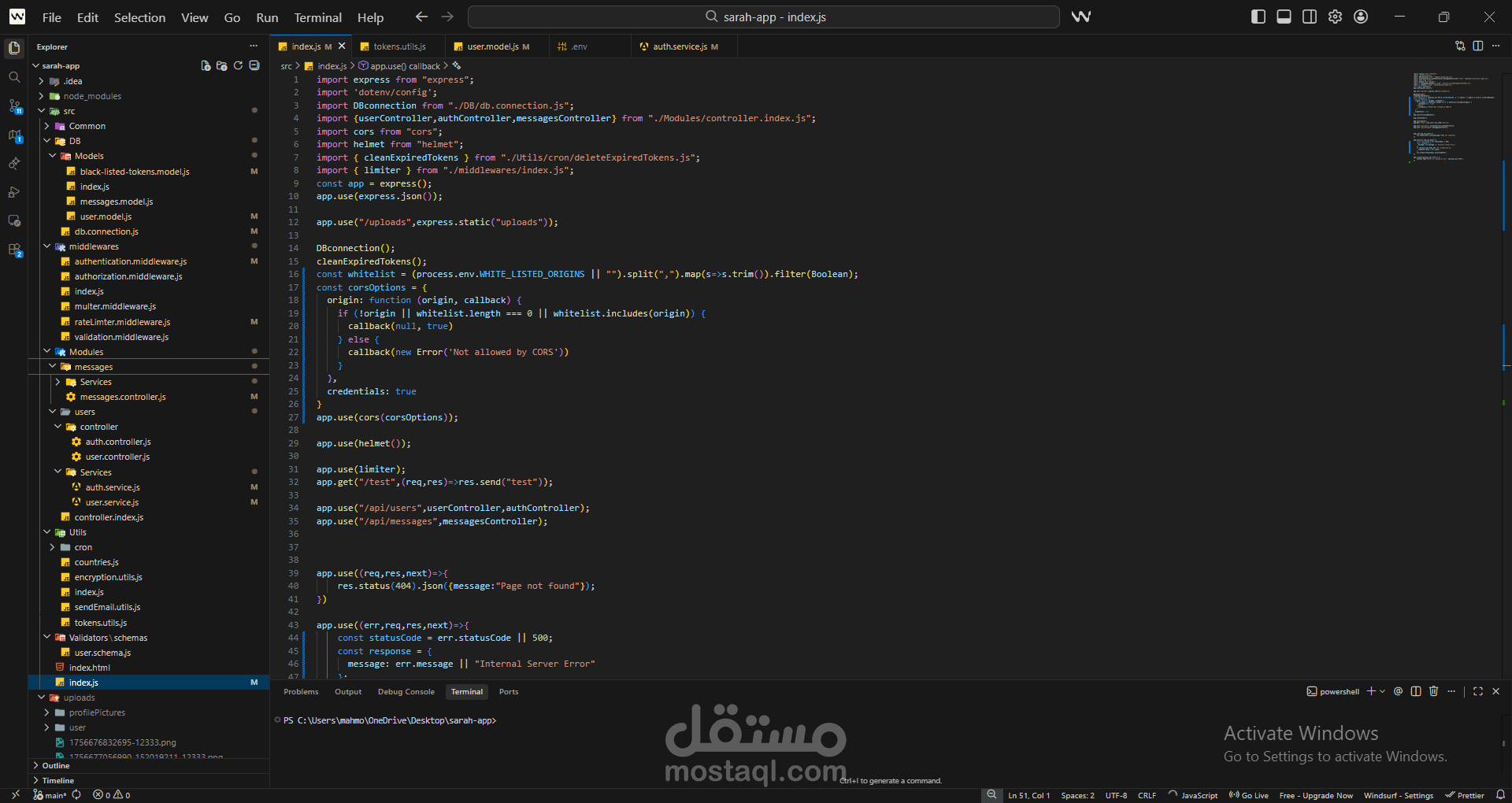 "قمت بتطوير الواجهة الخلفية (Back-end) لتطبيق 'صراحة'، وهو نظام متخصص في إدارة الرسائل المجهولة. المشروع يركز على توفير نظام آمن وقوي للتعامل مع البيانات والطلبات.