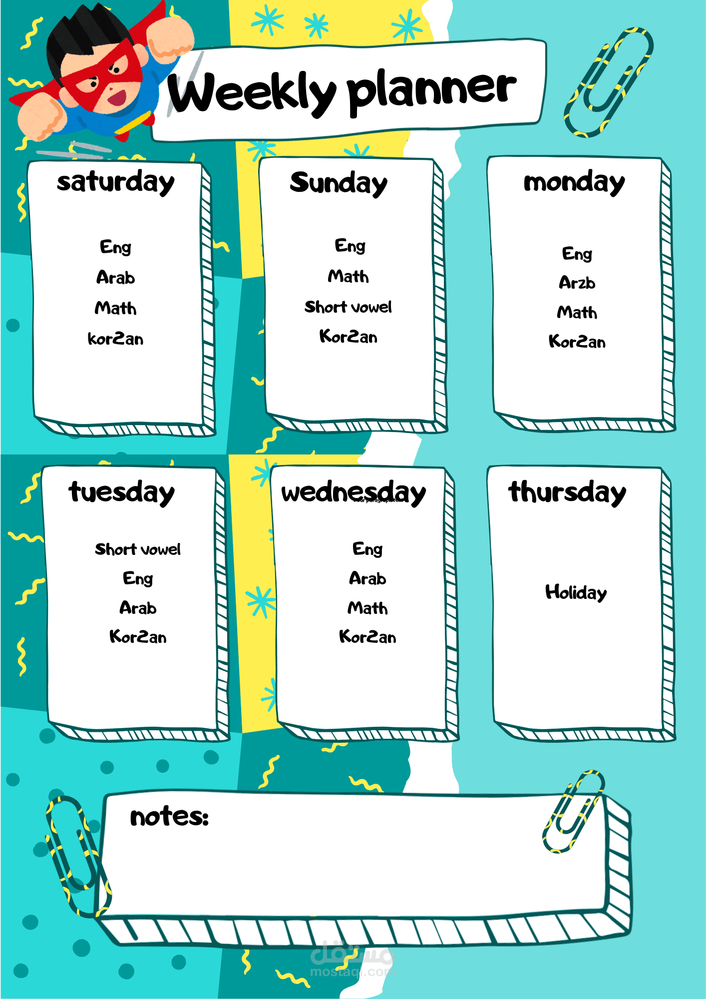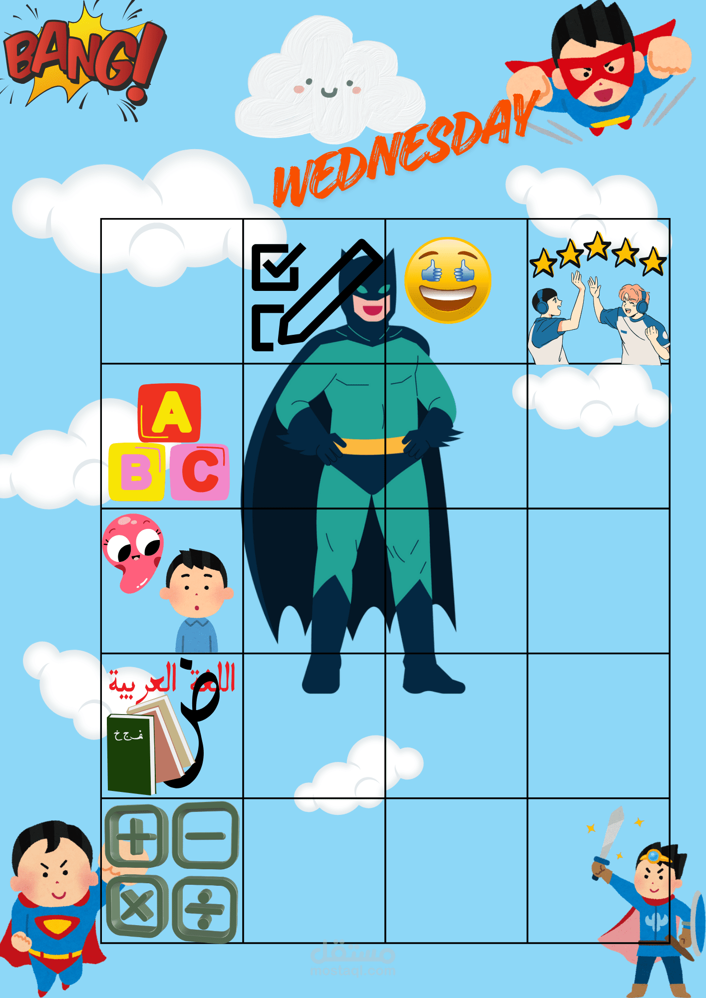 جداول مهام مخصصة: تصميم جداول يومية وأسبوعية جذابة تحتوي على شخصيات طفلك المفضلة، مقسمة بأسلوب علمي يناسب طاقة الطفل.